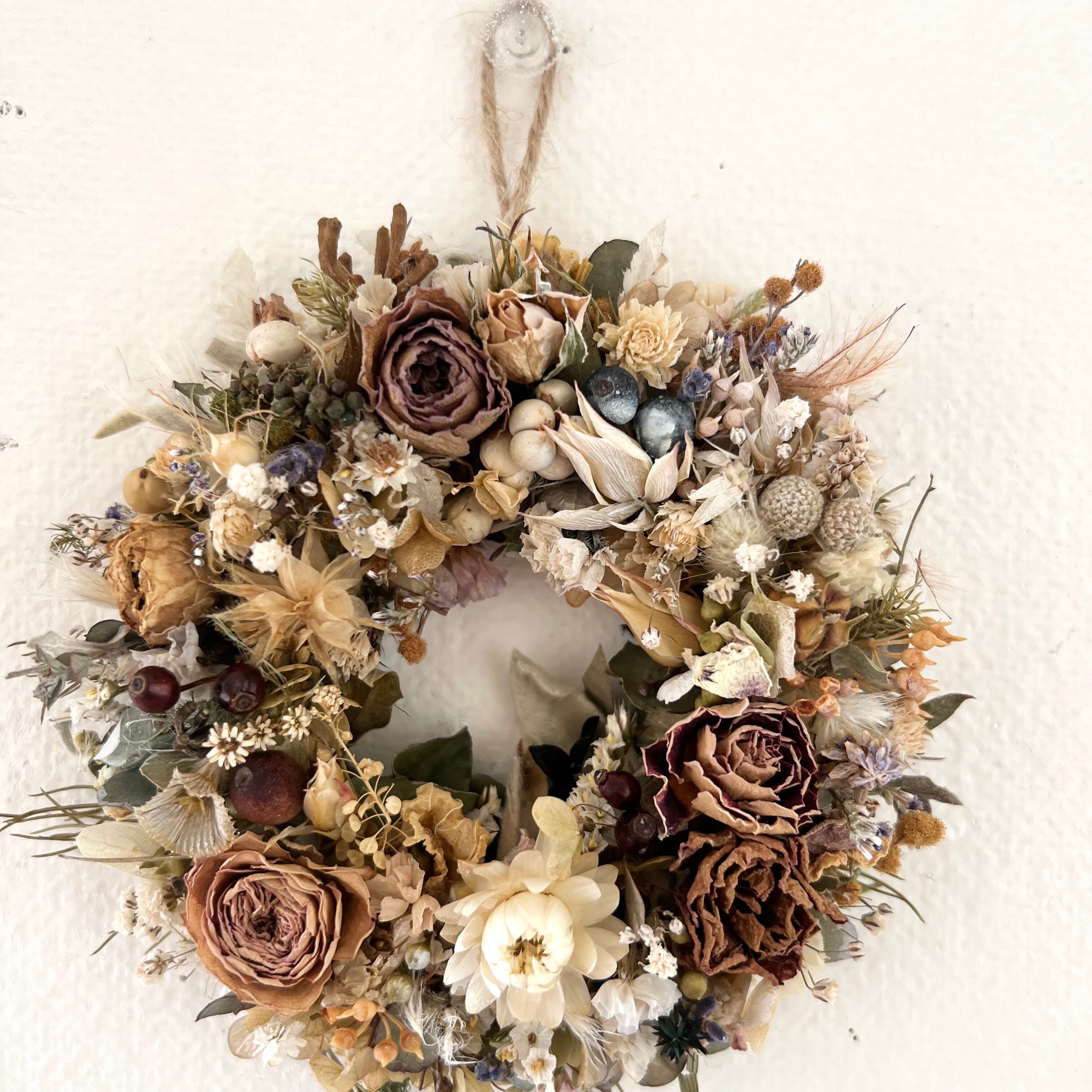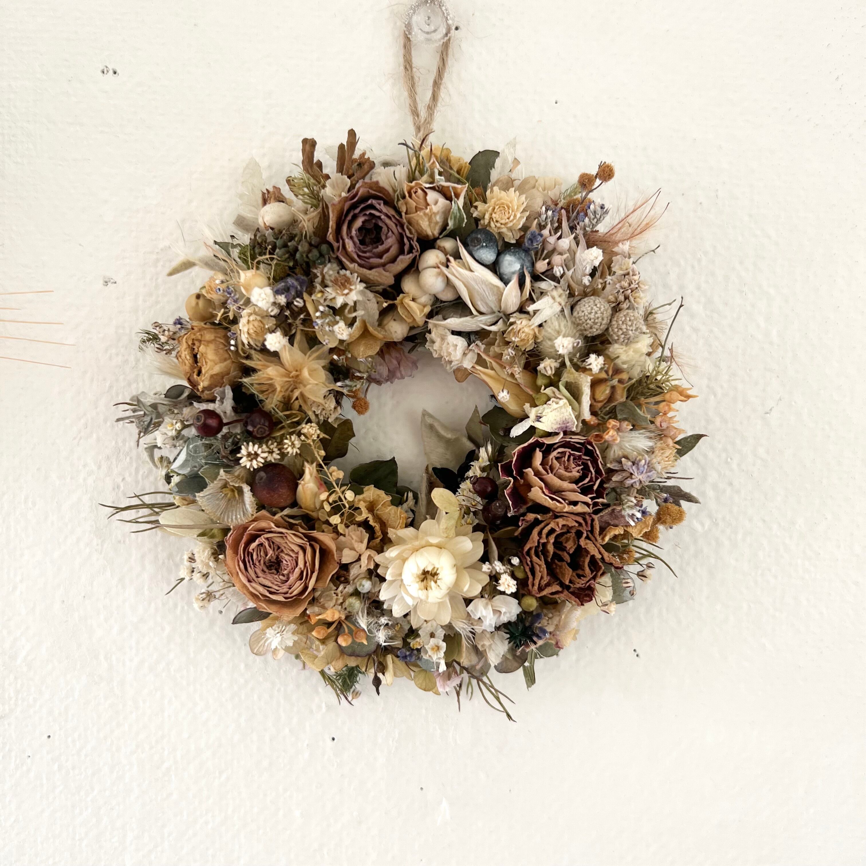 秋色 ローズと小花のミニリース ドライフラワー 誕生日プレゼント 引っ越し祝い 記念日 ギフト