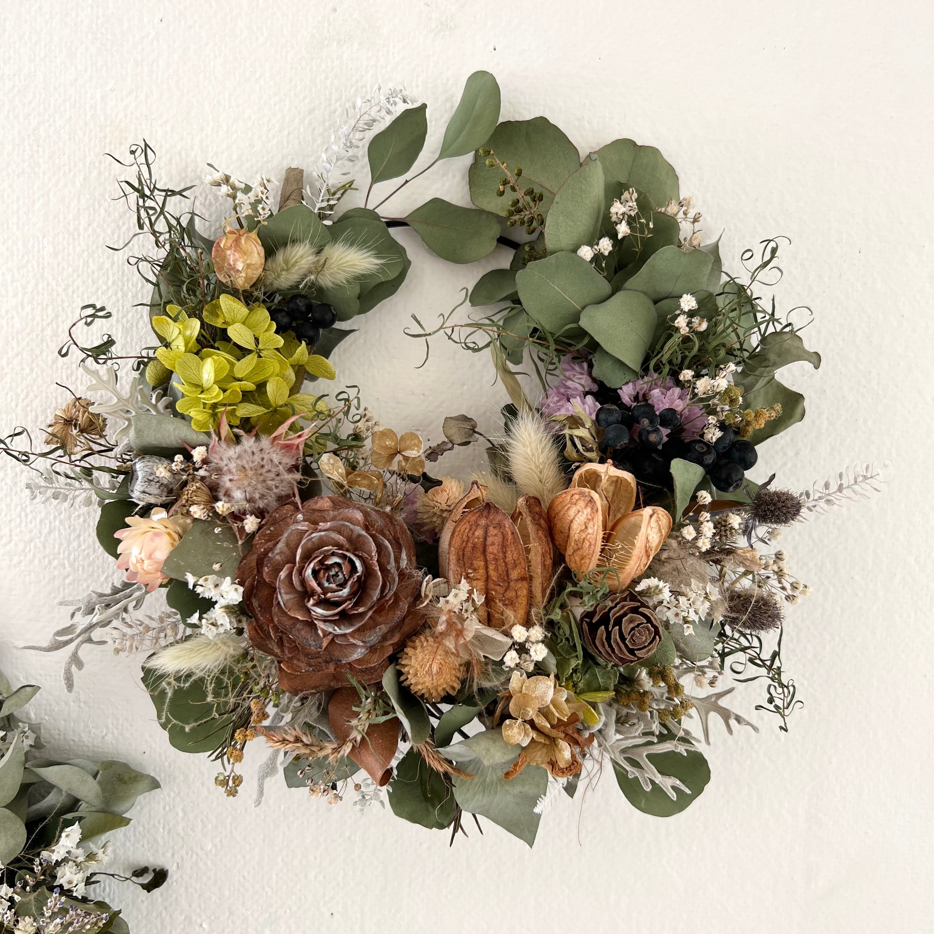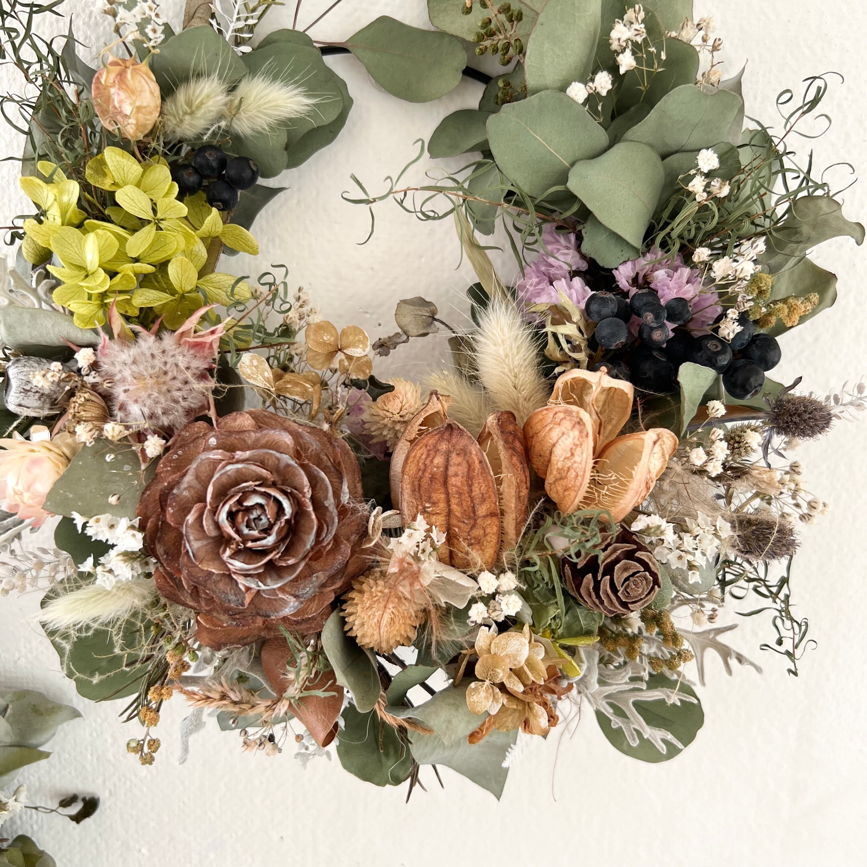 ユーカリ 木の実の秋リース ハロウィン ドライフラワー 誕生日プレゼント 引っ越し祝い 記念日. ギフト