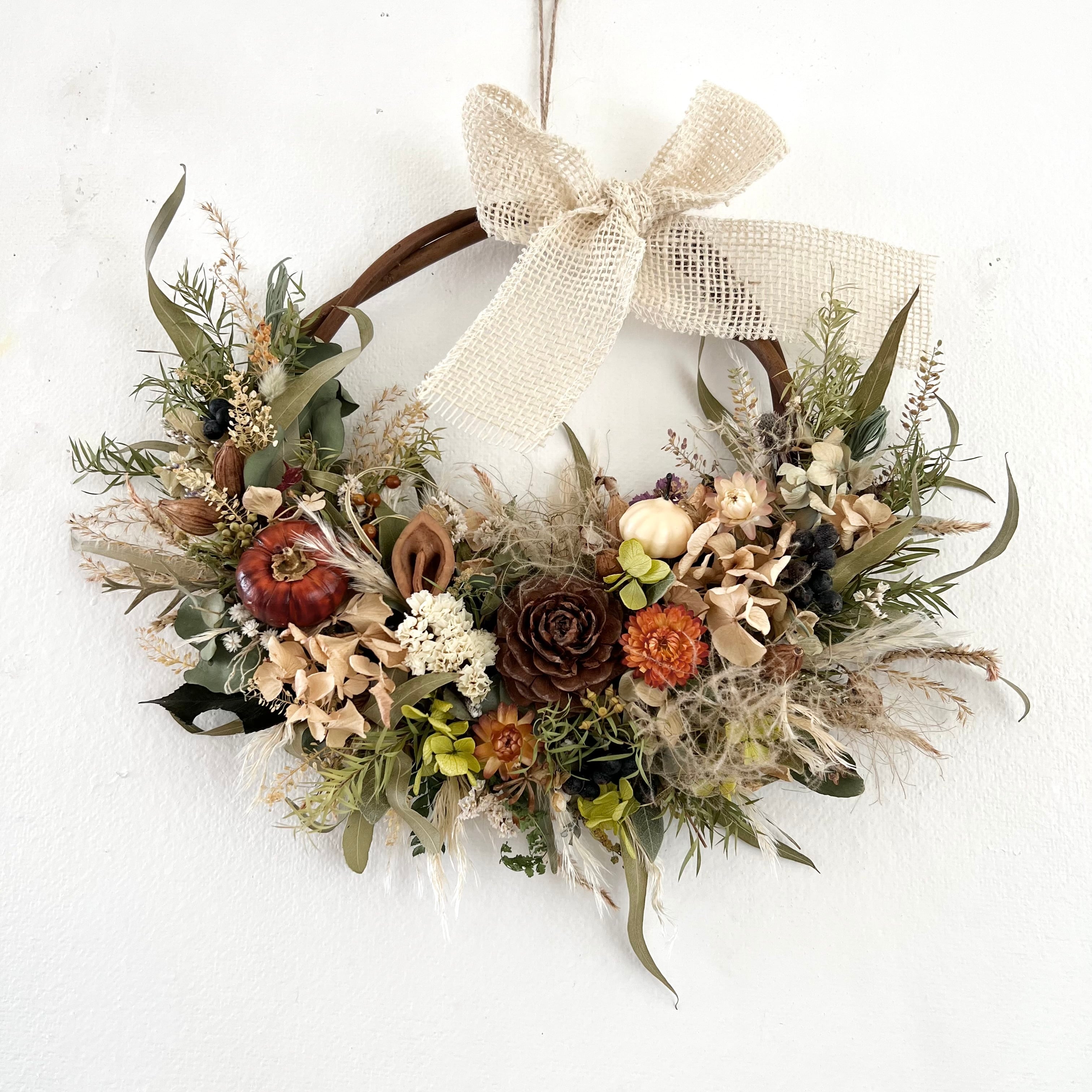 秋のリース ユーカリと木の実 ハロウィン ドライフラワー 誕生日プレゼント 引っ越し祝い 記念日. ギフト