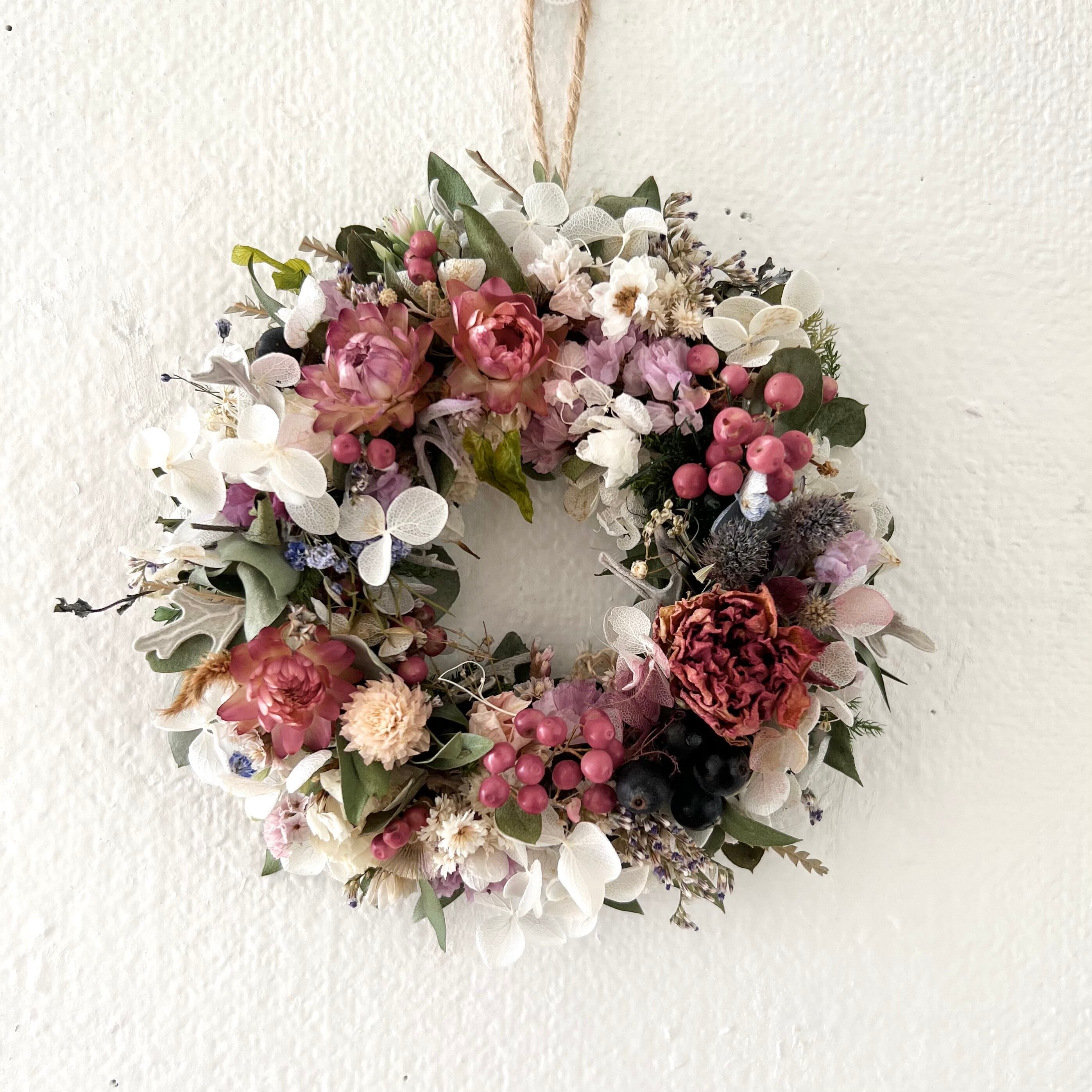 ローズと小花のミニリース ドライフラワー 誕生日プレゼント 引っ越し祝い 記念日 ギフト