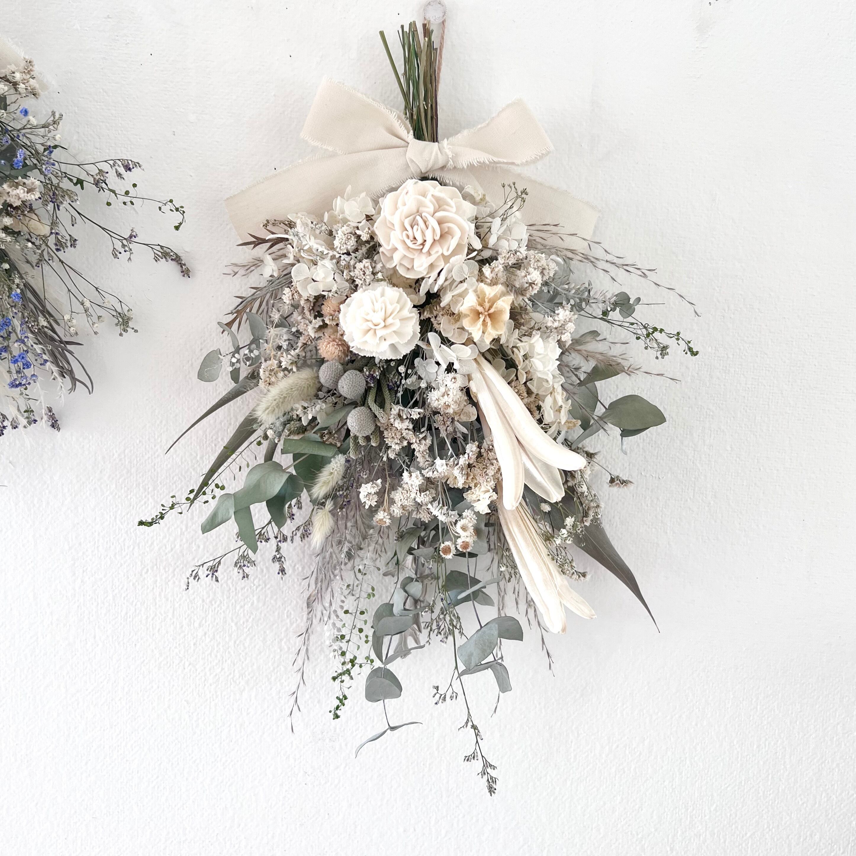 ソラダリアと小花のスワッグ ナチュラルホワイト ドライフラワー 誕生日プレゼント 引っ越し祝い 記念日. ギフト