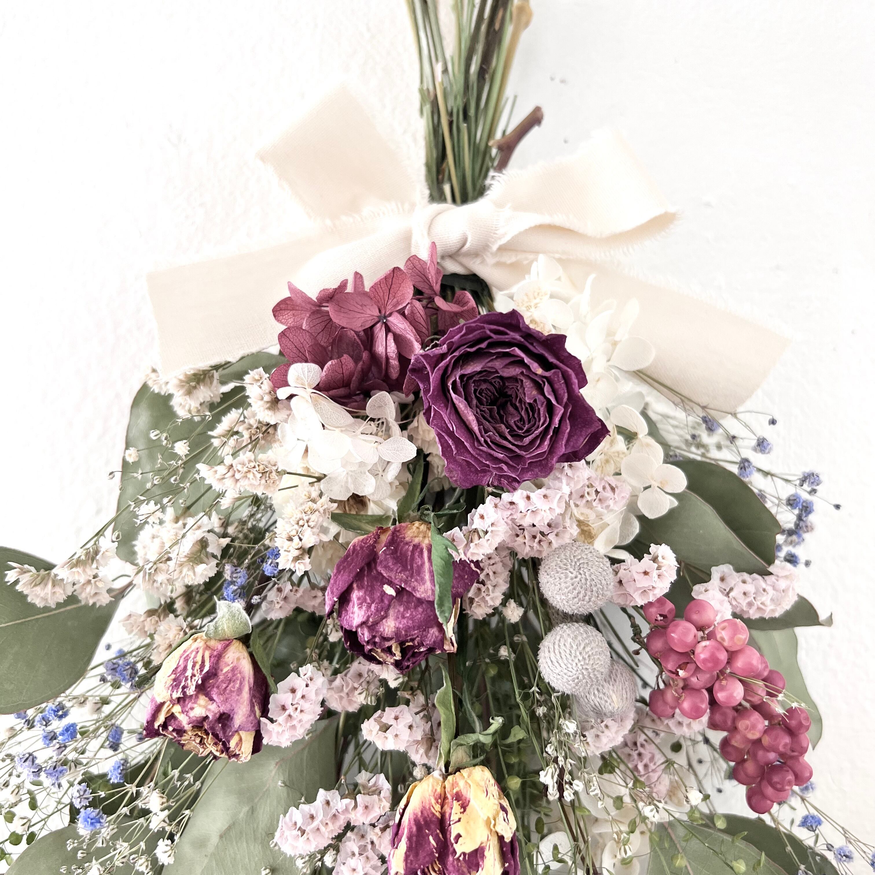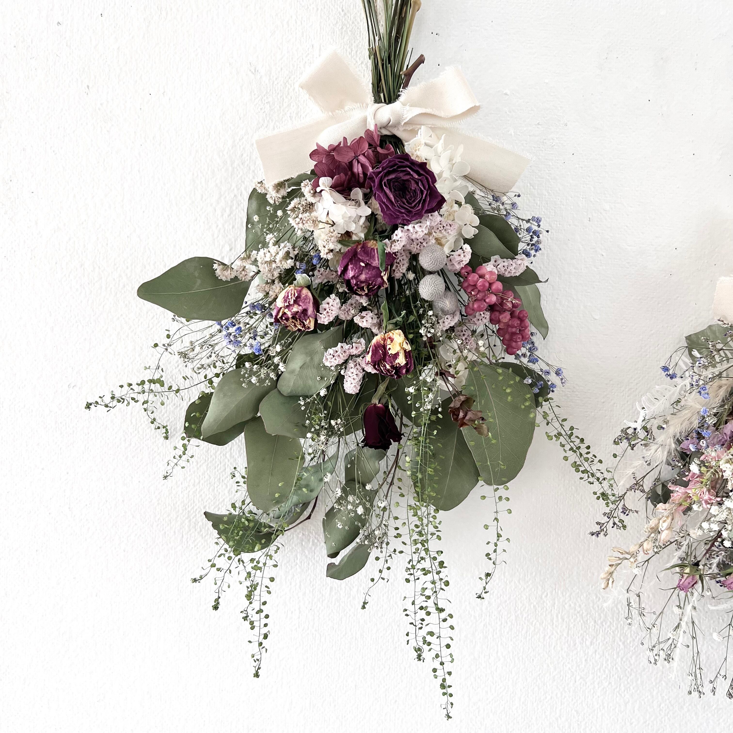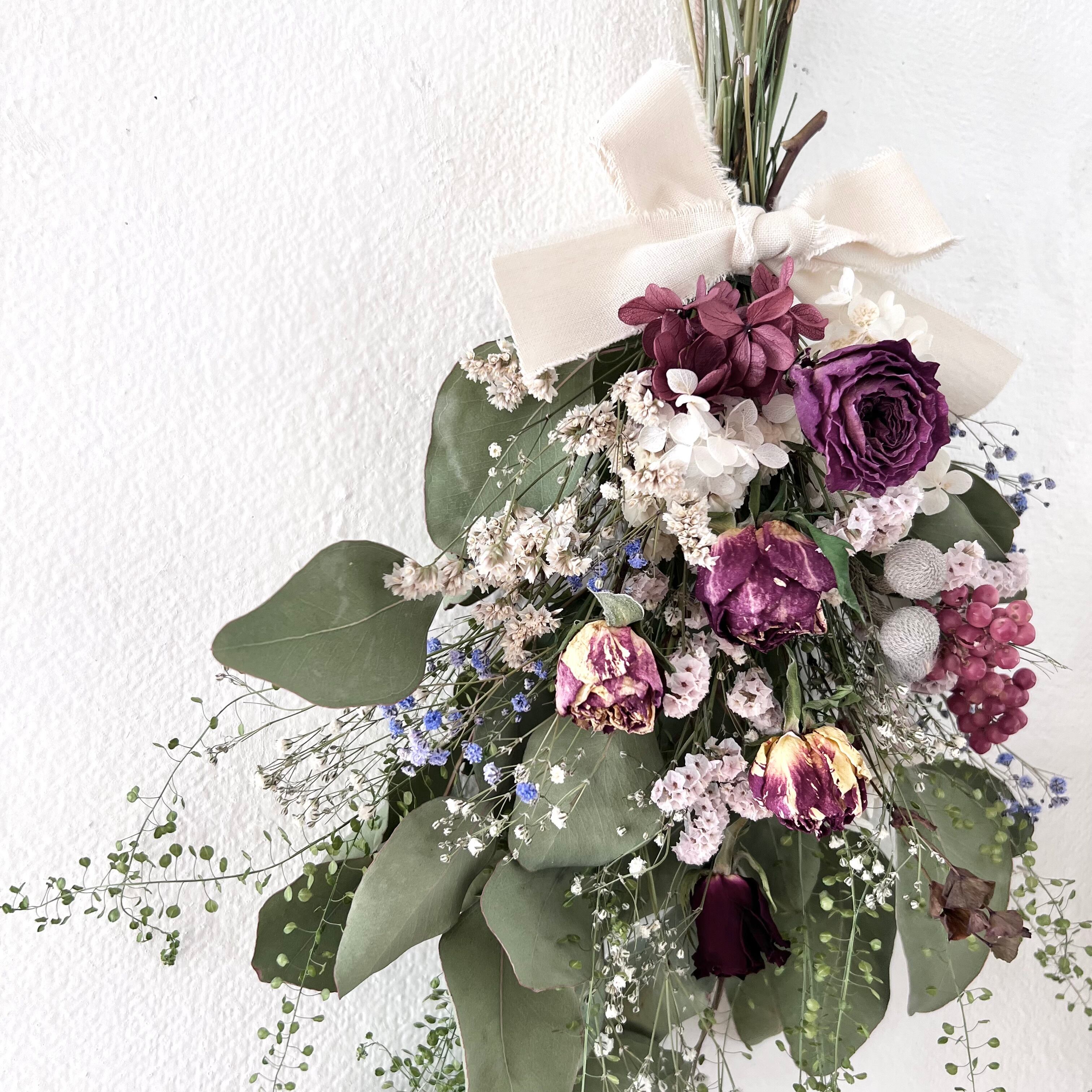 ユーカリとローズのスワッグ ドライフラワー 誕生日プレゼント 引っ越し祝い 記念日. ギフト