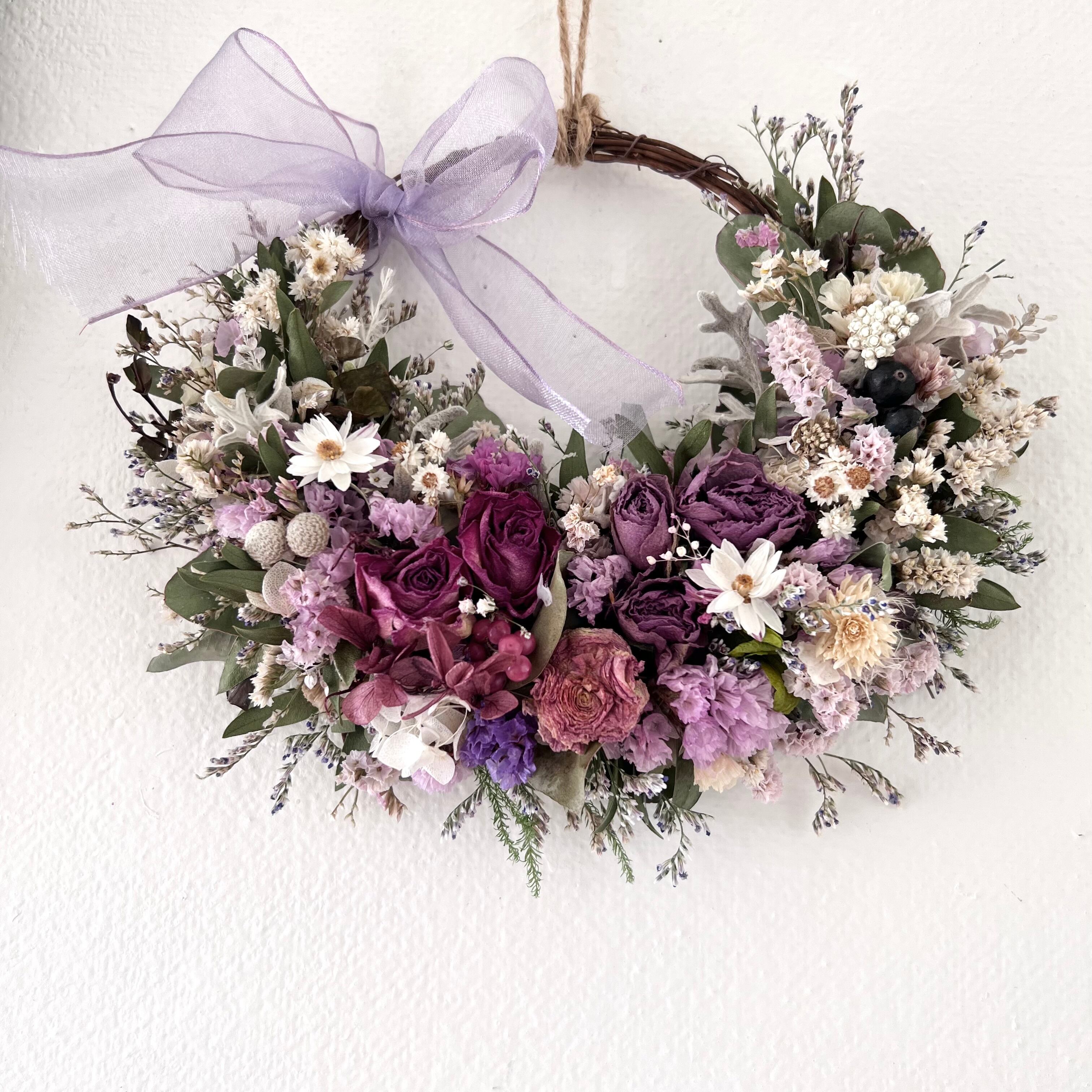 ローズと小花のリース ドライフラワー 誕生日プレゼント 引っ越し祝い 記念日 ギフト