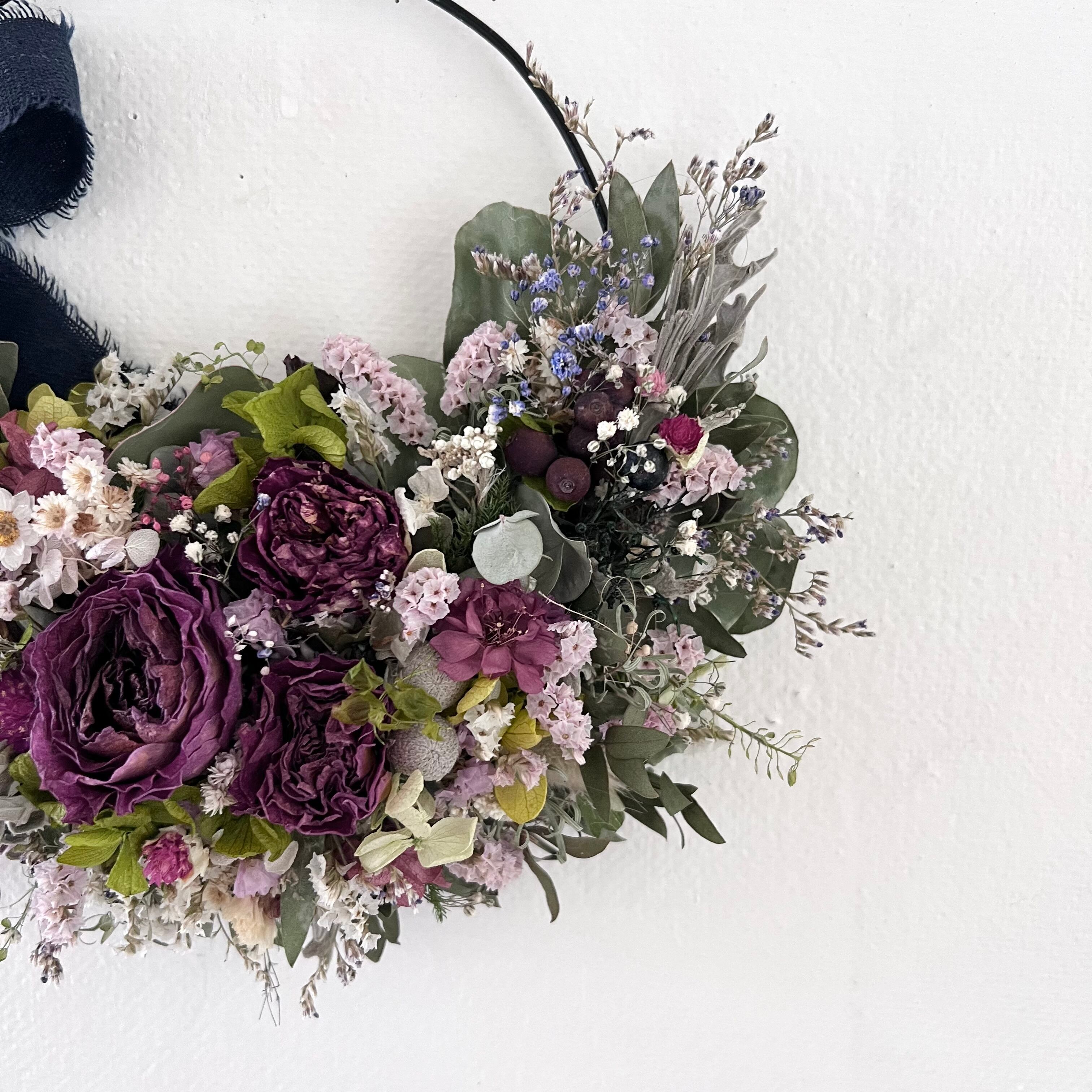 ローズと小花のリース ドライフラワー 誕生日プレゼント 引っ越し祝い 記念日. ギフト