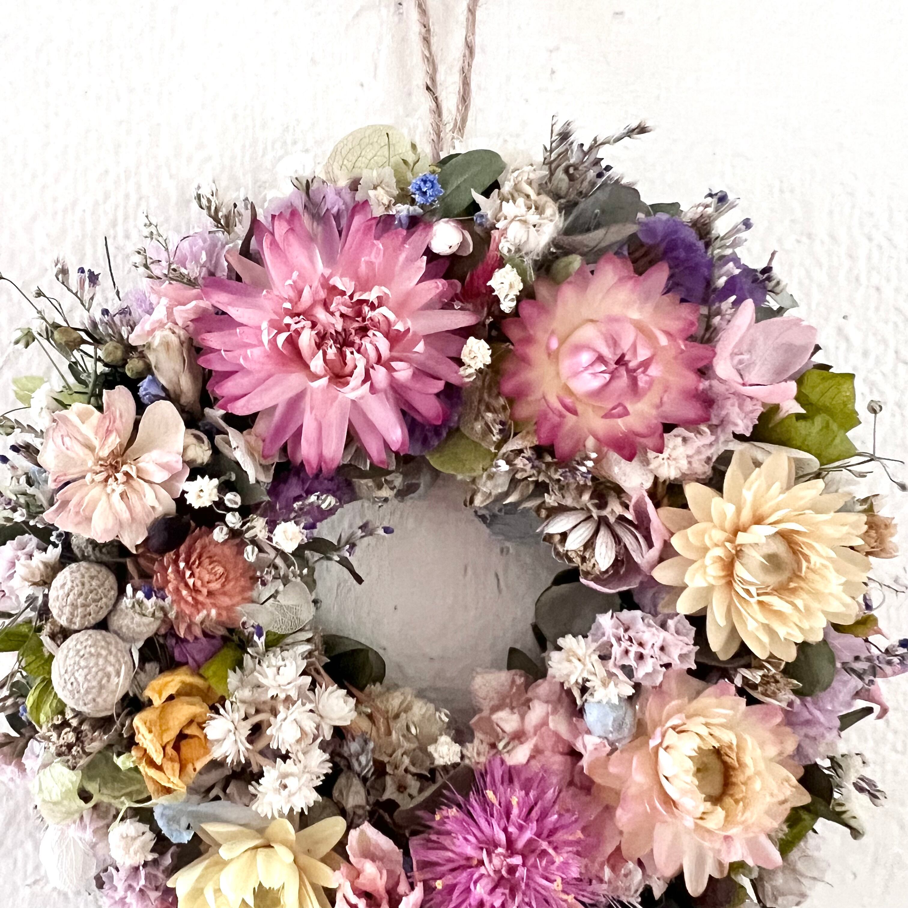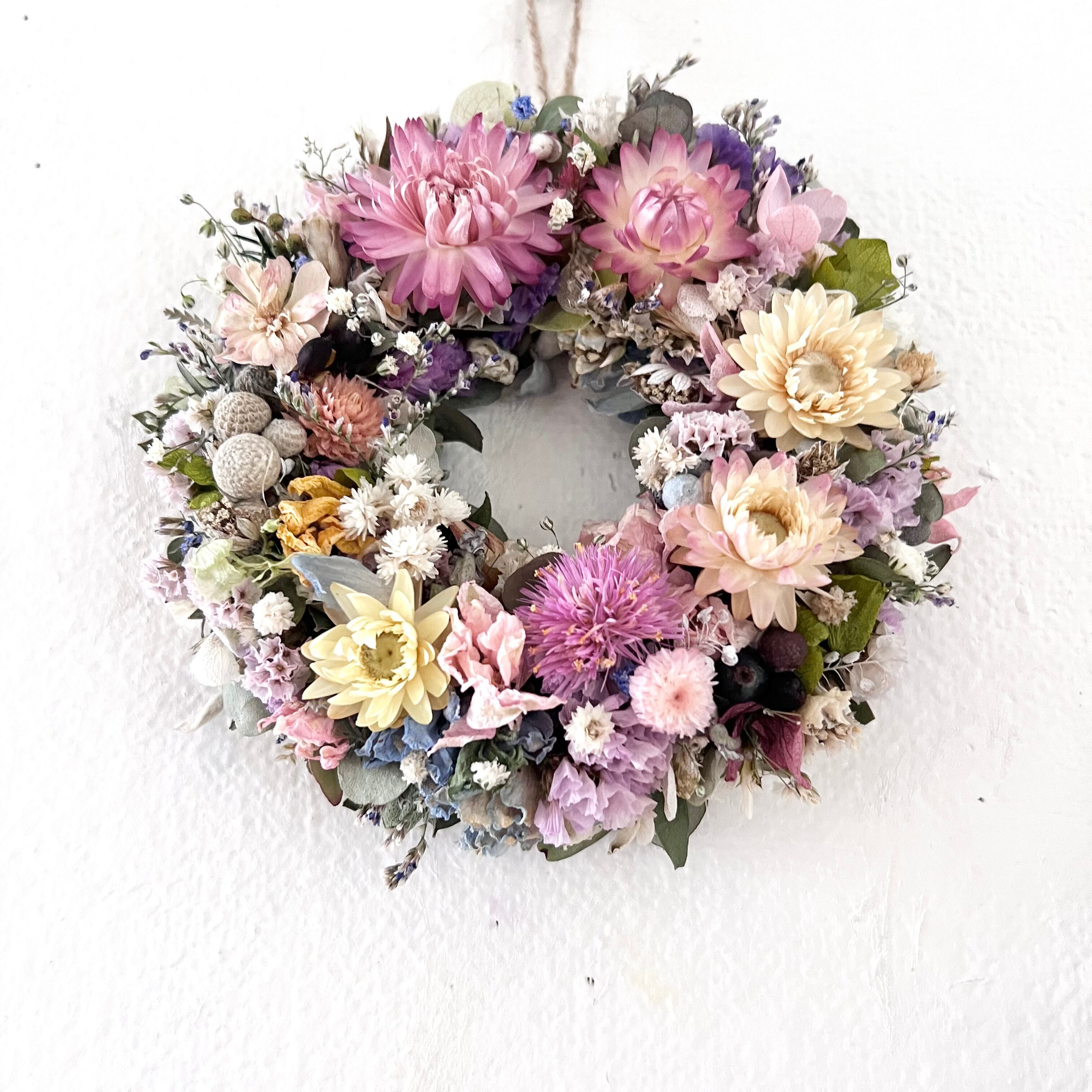 ヘリクリサムと小花のミニリース ドライフラワー 誕生日プレゼント 引っ越し祝い 記念日. ギフト