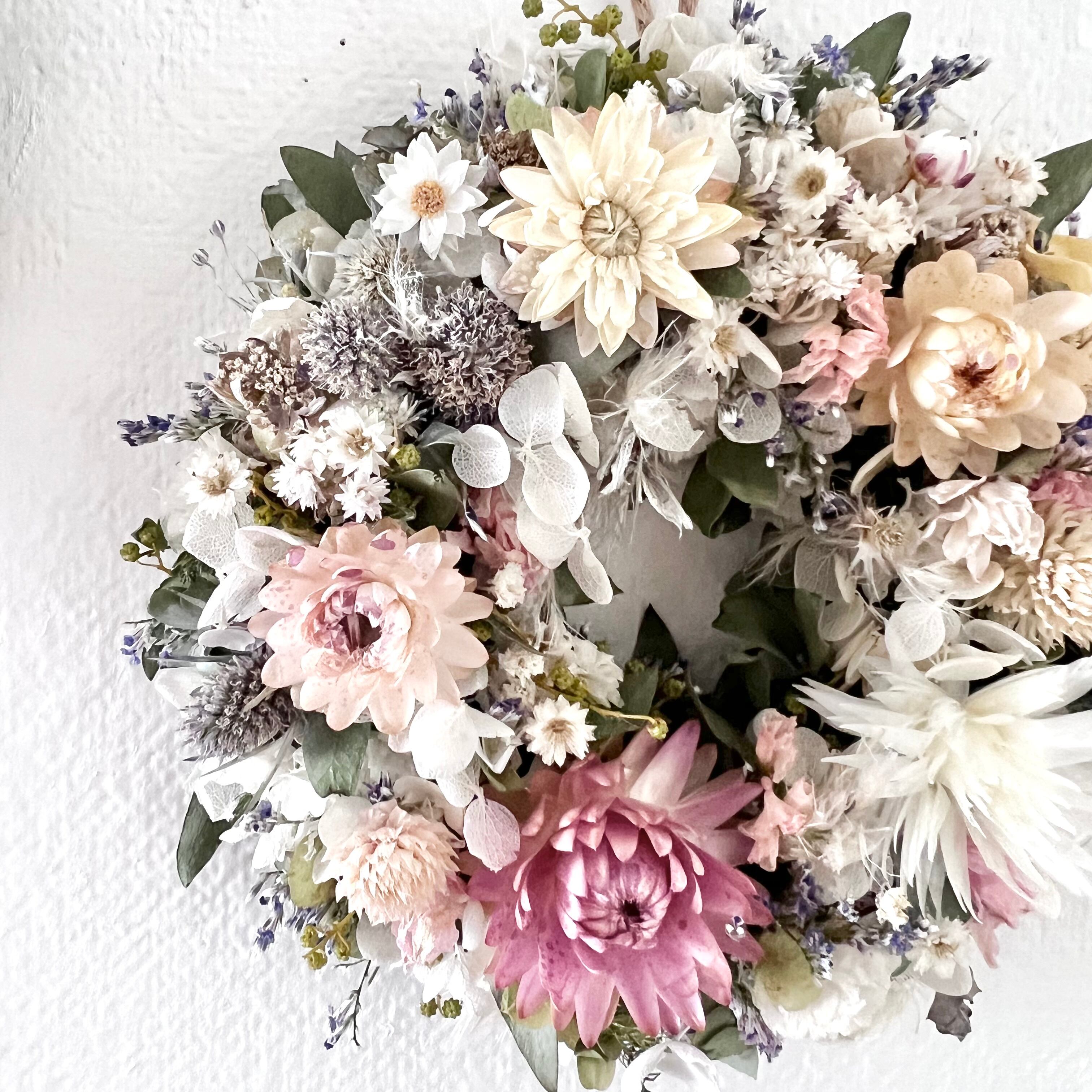 ヘリクリサム小花の春リース ドライフラワー 誕生日プレゼント 引っ越し祝い 記念日. ギフト