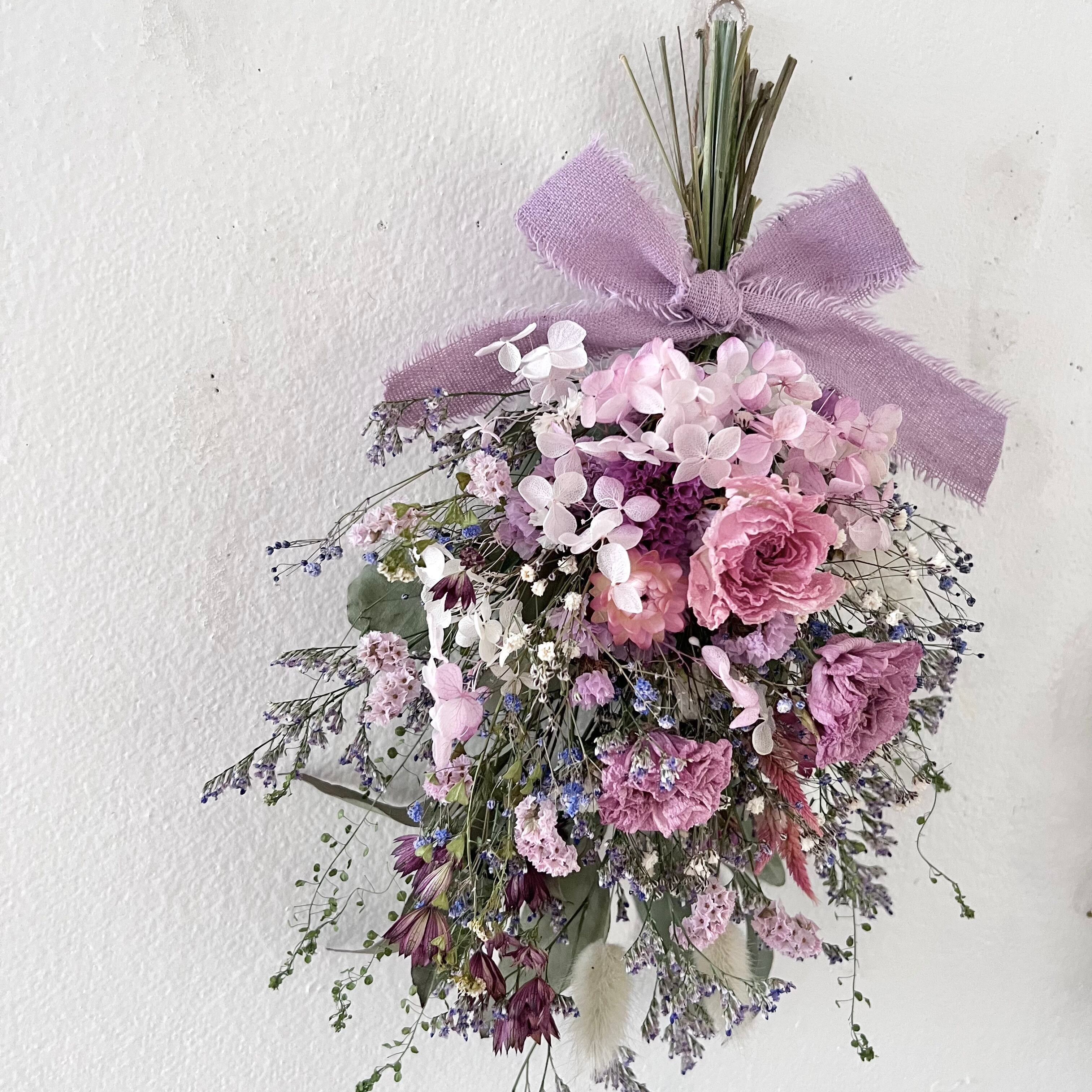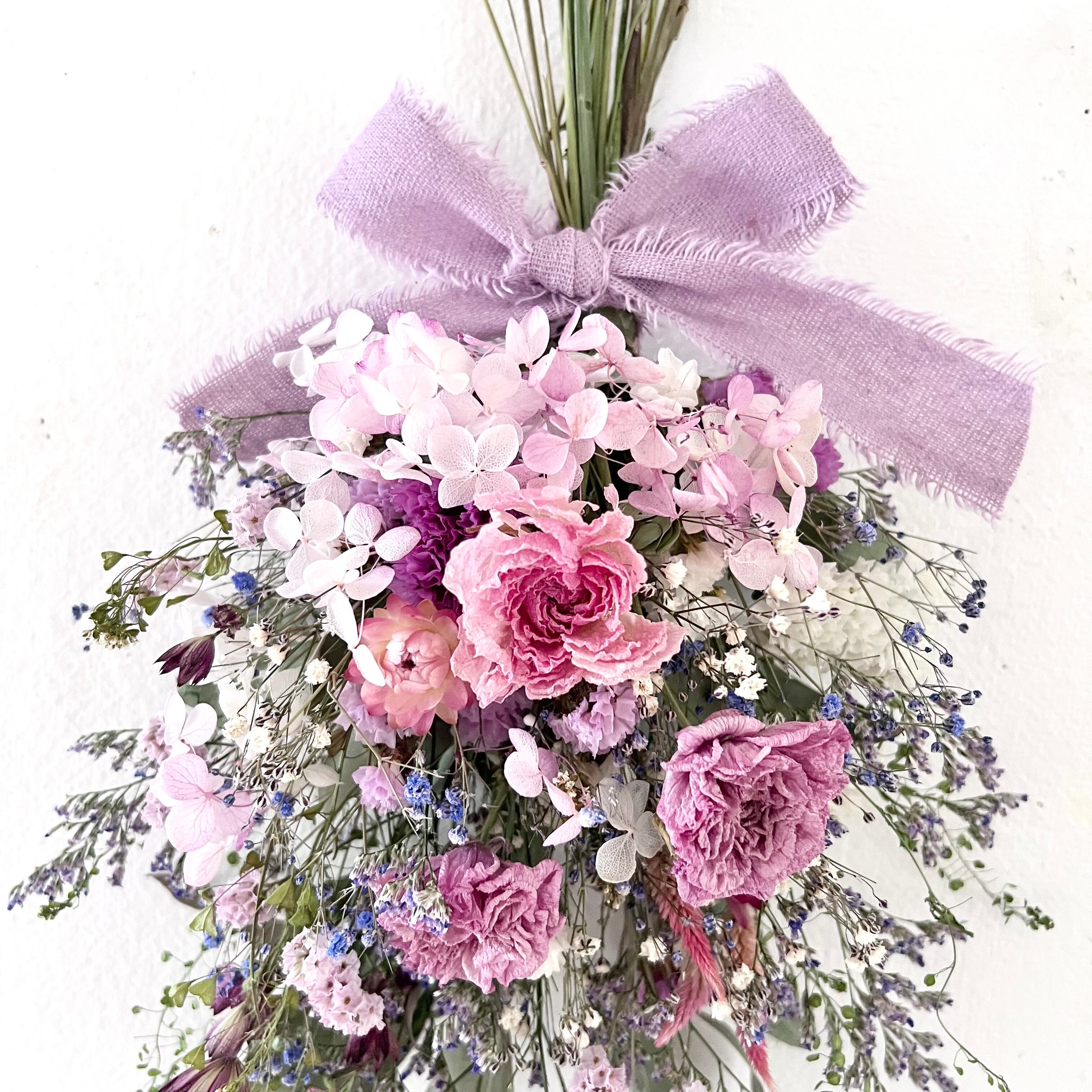 ピンク ラナンキュラスと小花のスワッグ ドライフラワー 誕生日プレゼント 引っ越し祝い 記念日. ギフト