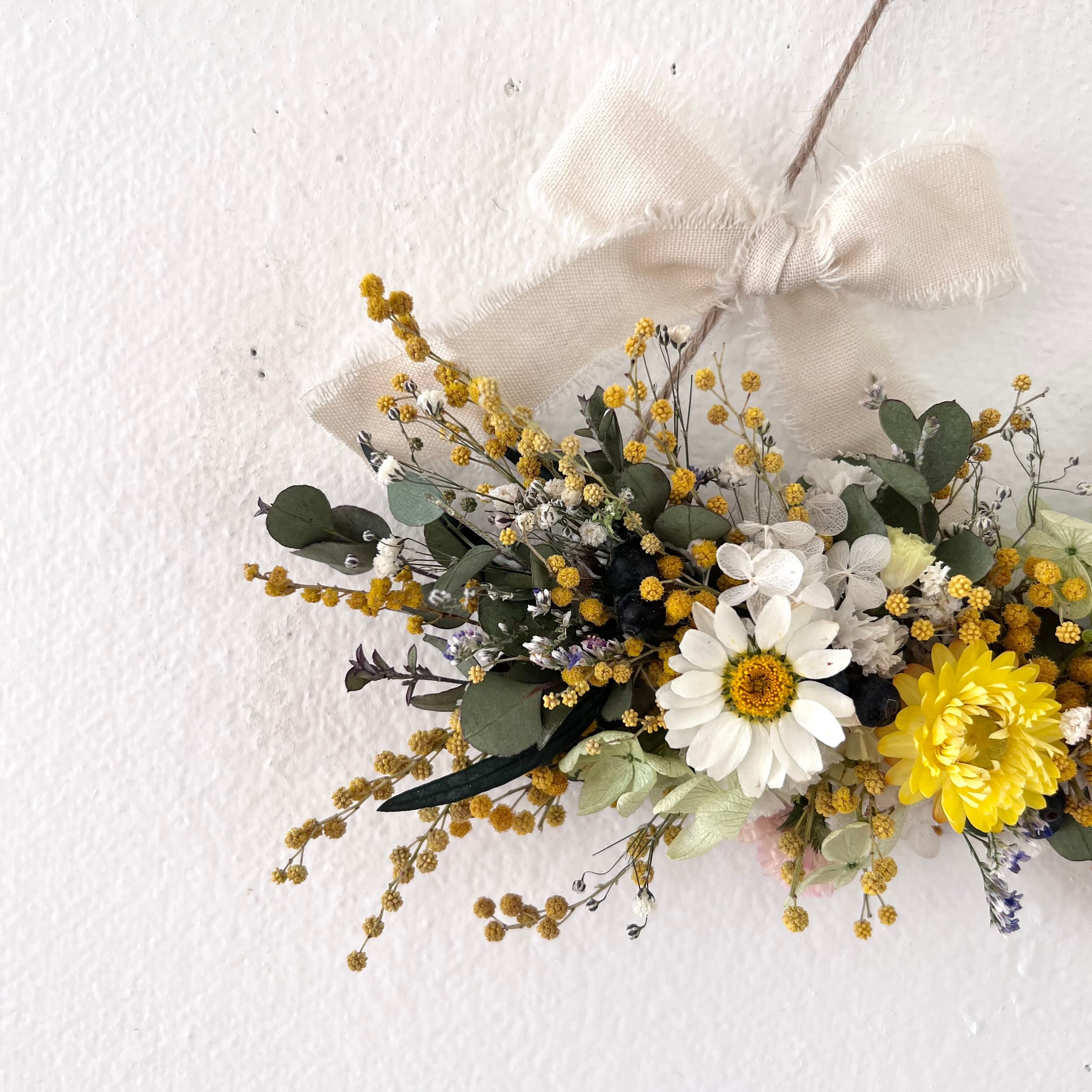 ミモザと小花のの春リース ドライフラワー 誕生日プレゼント 引っ越し祝い 記念日. ギフト