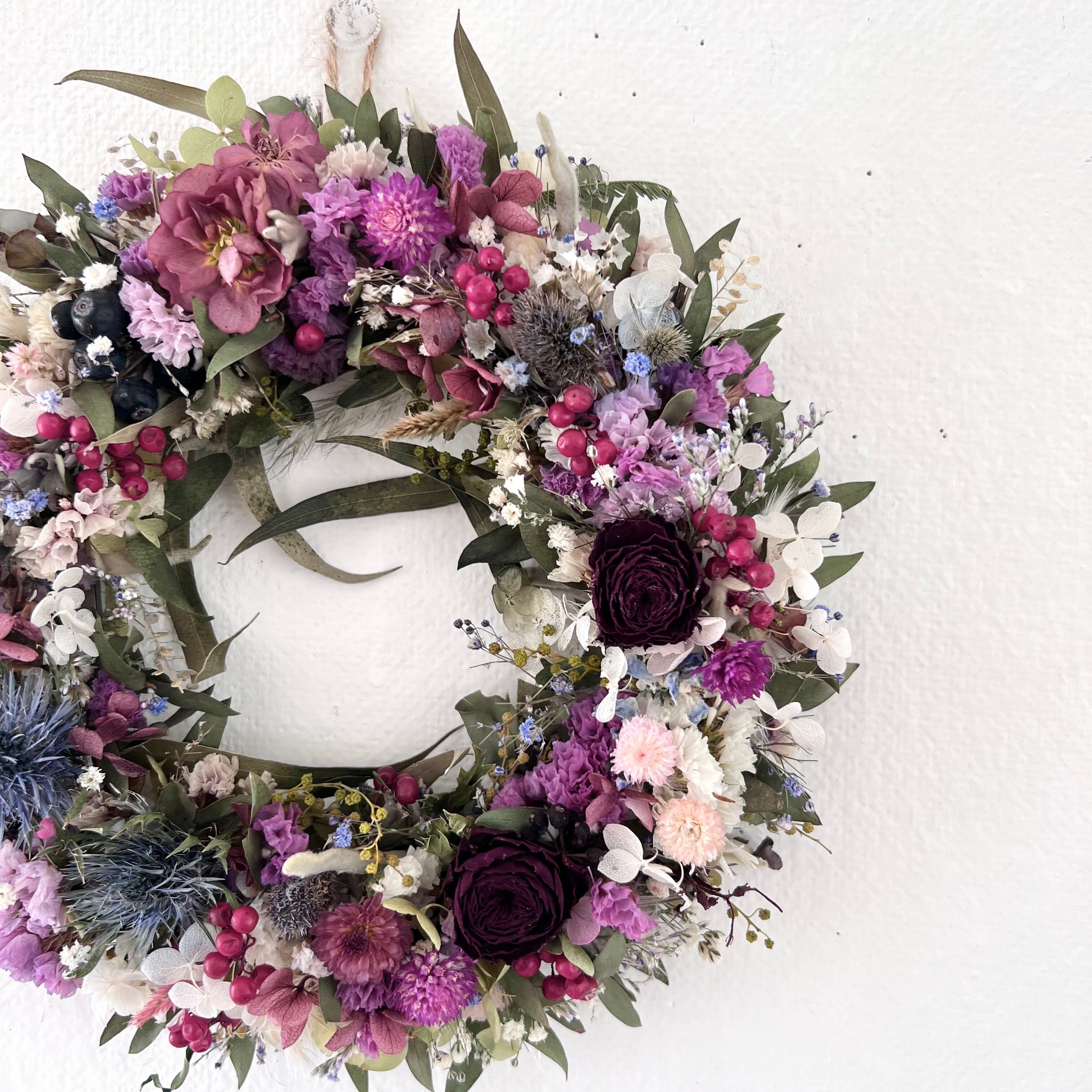 ローズと小花ののリース ドライフラワー 誕生日プレゼント 引っ越し祝い 記念日. ギフト