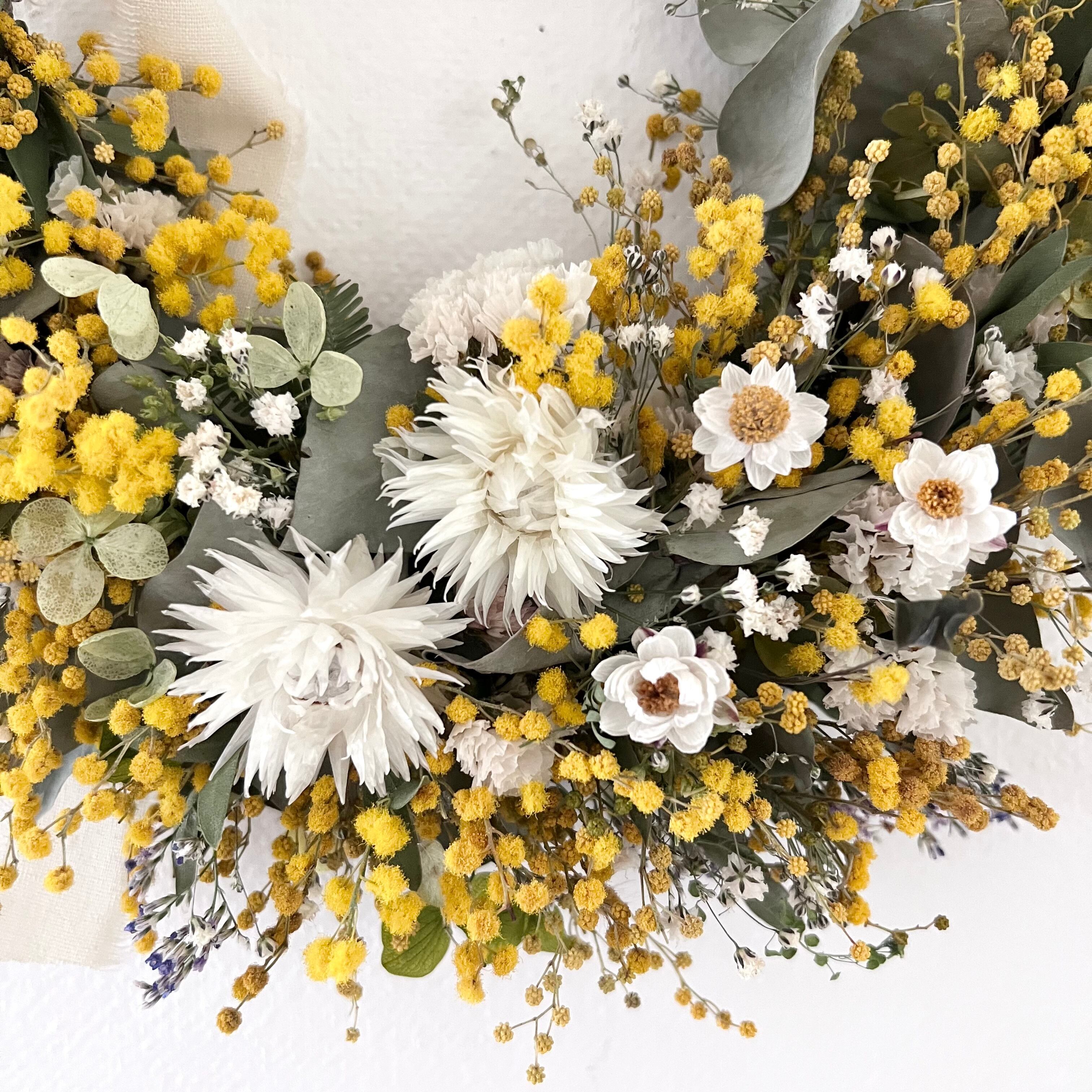 ミモザと小花の春リース ドライフラワー 誕生日プレゼント 引っ越し祝い 記念日. ギフト