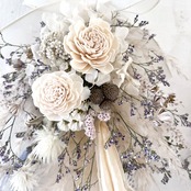 ナチュラルホワイトのソラローズとパンパスグラス テールリード 小花 紫陽花などをふんわり合わせました。