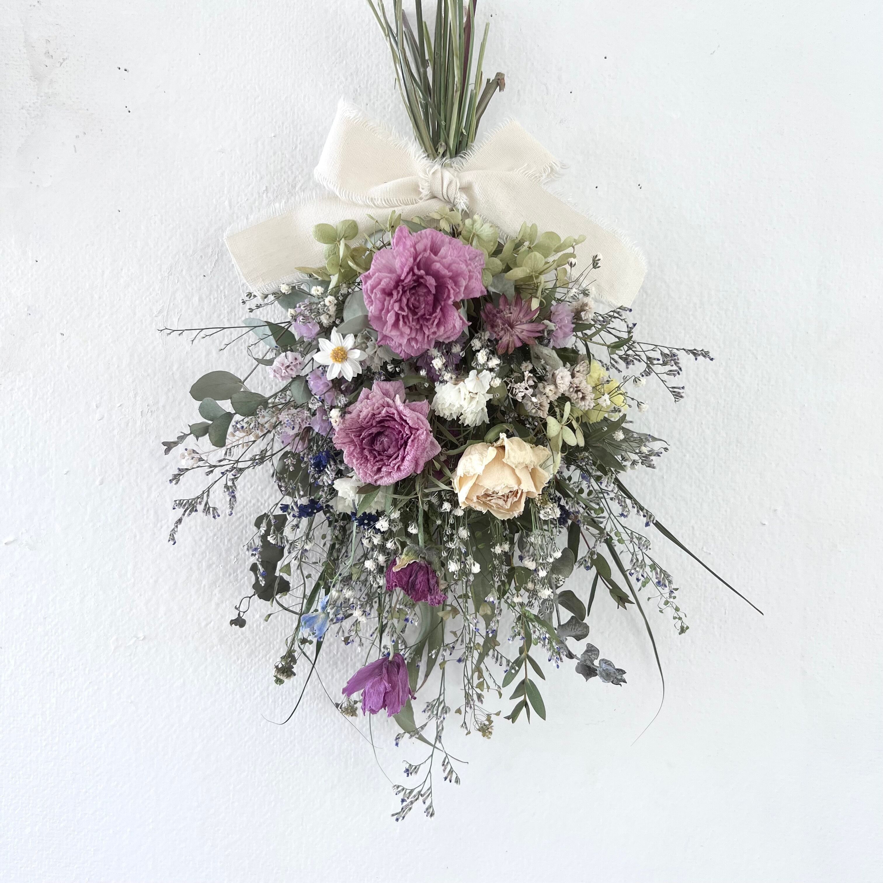 ラナンキュラスとローズ 小花の春スワッグ ドライフラワー 誕生日プレゼント 引っ越し祝い 記念日. ギフト