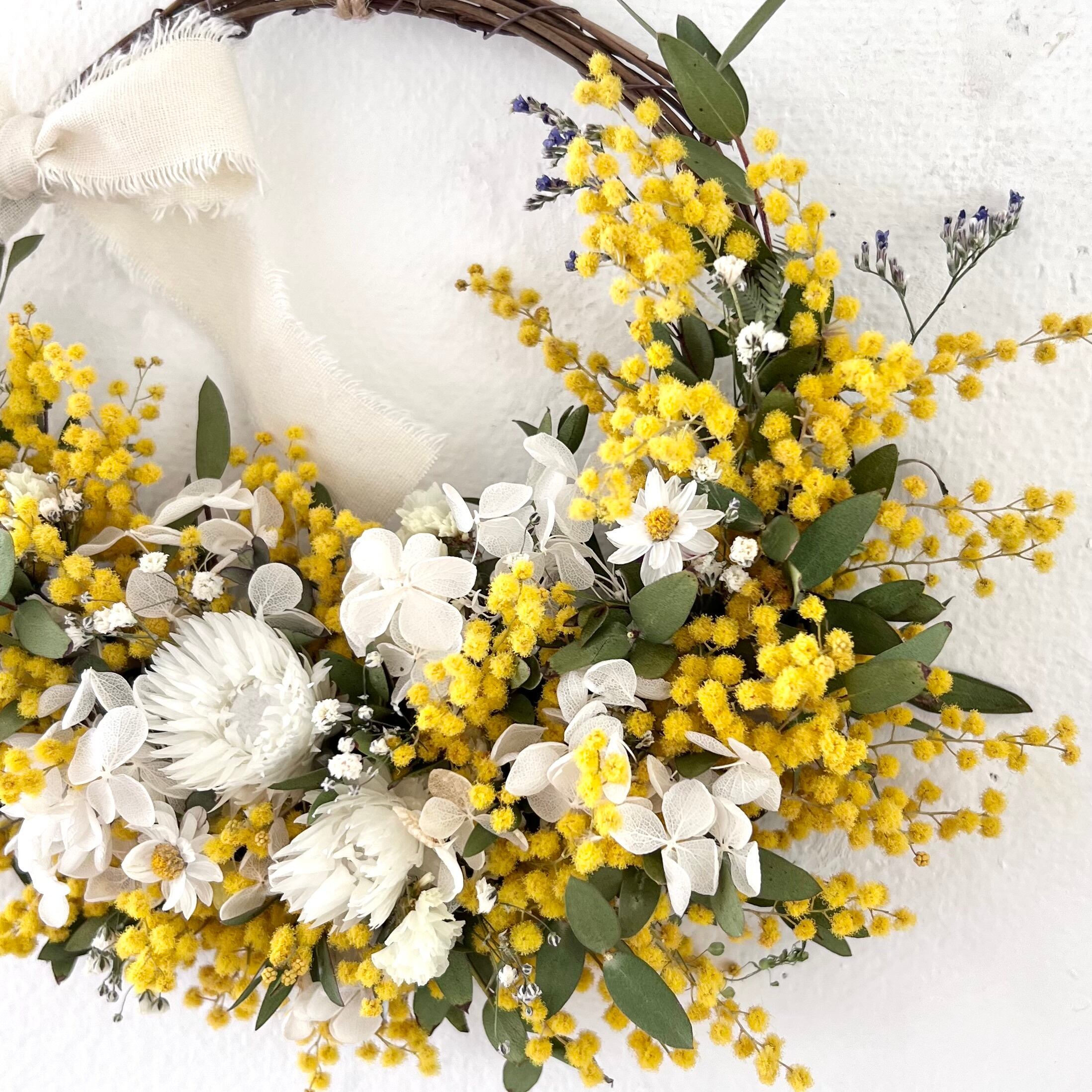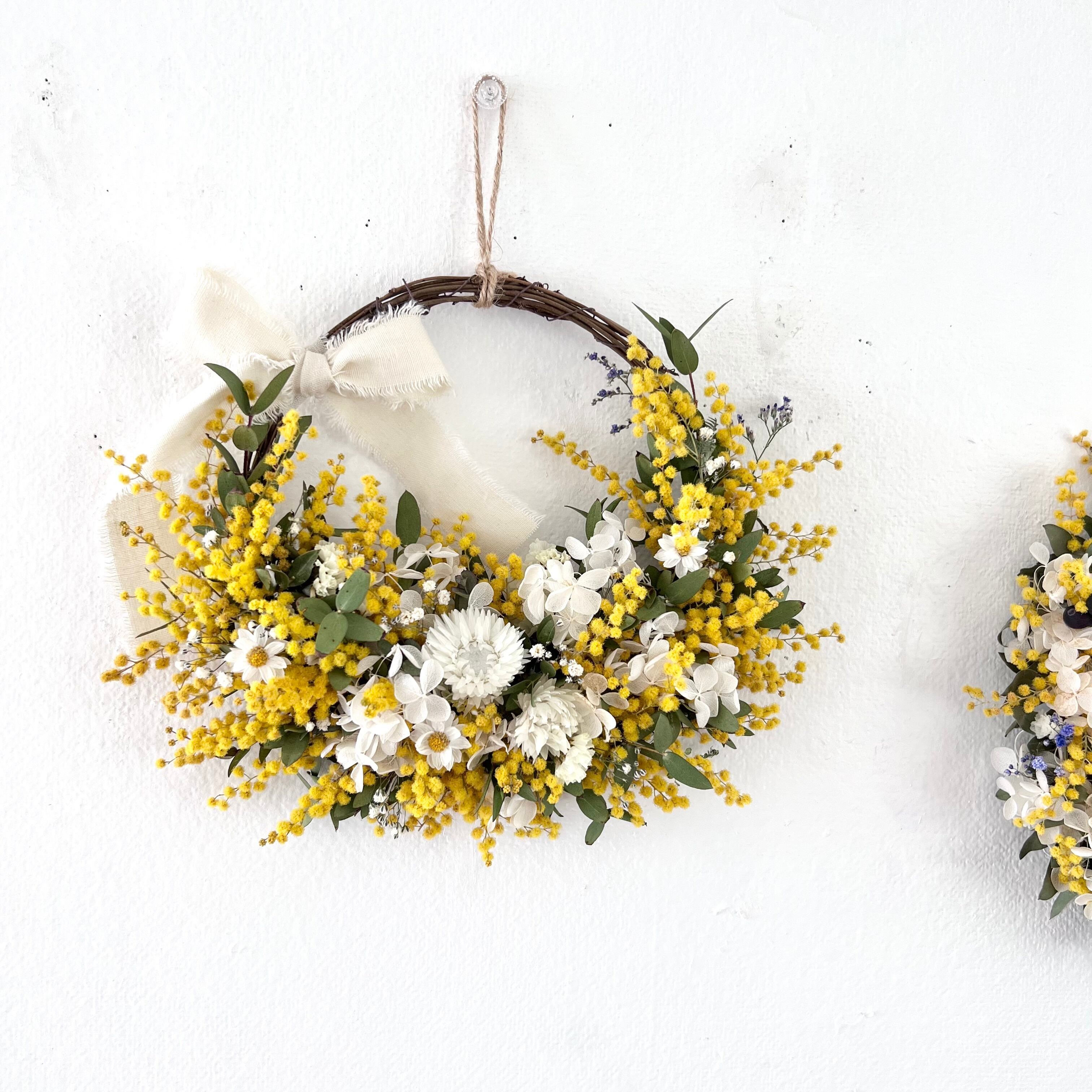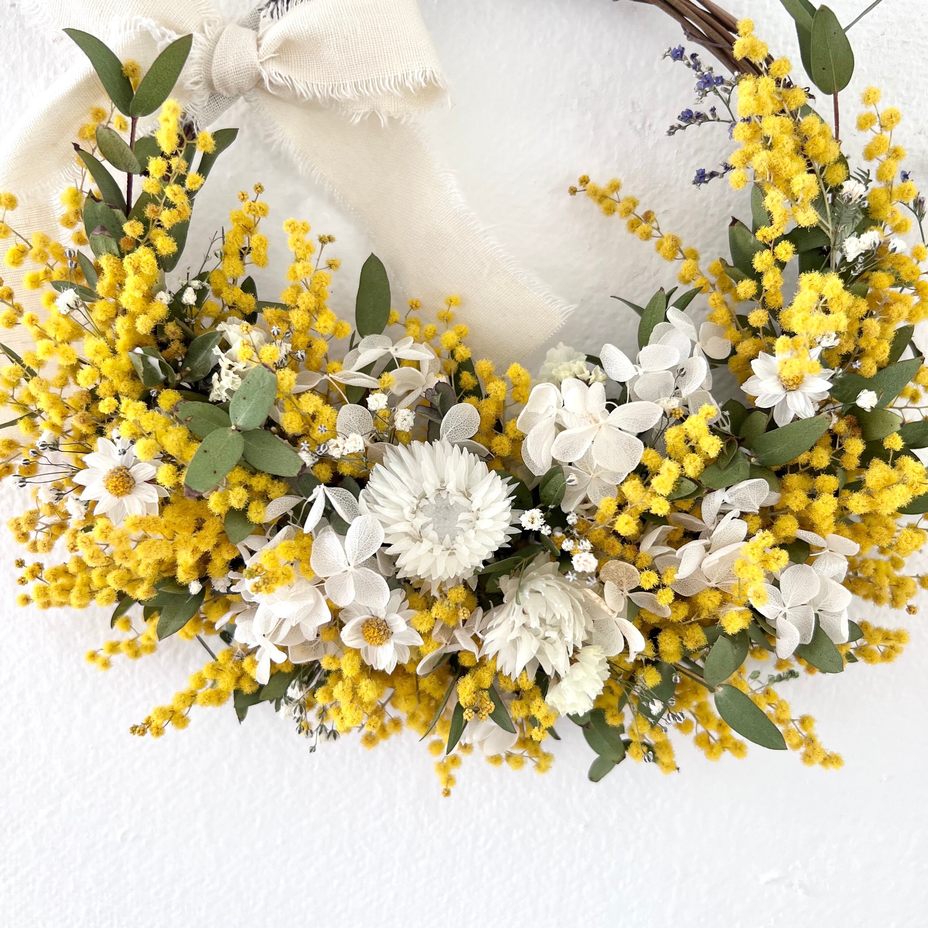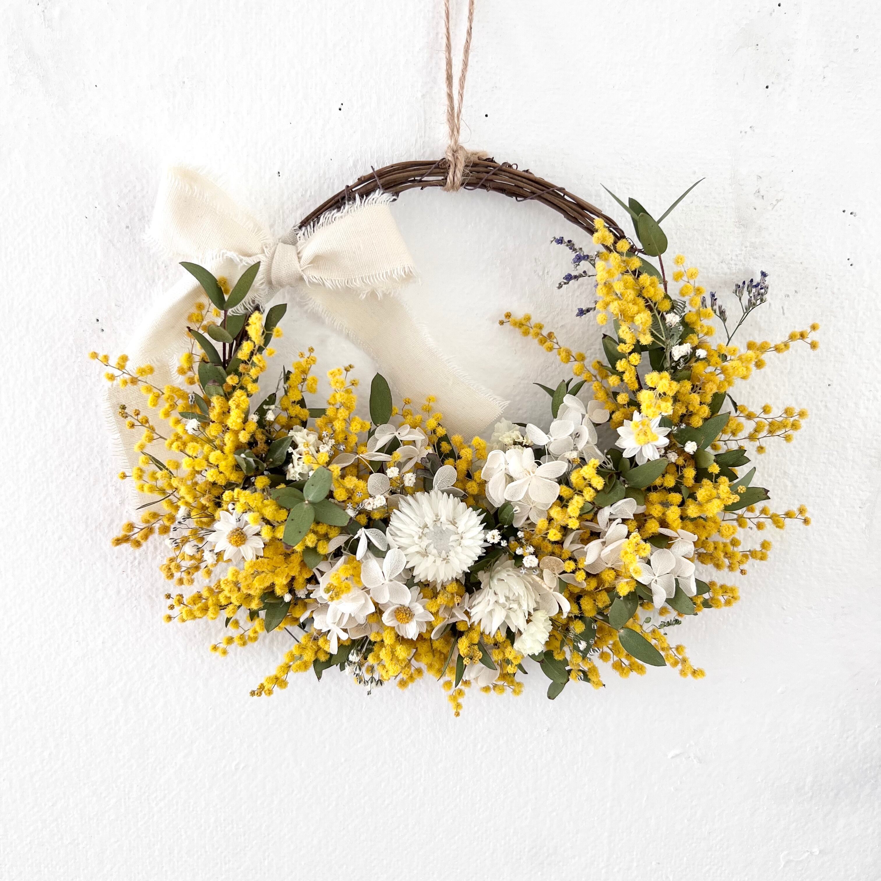 ミモザのリース ドライフラワー 誕生日プレゼント 引っ越し祝い 記念日. ギフト