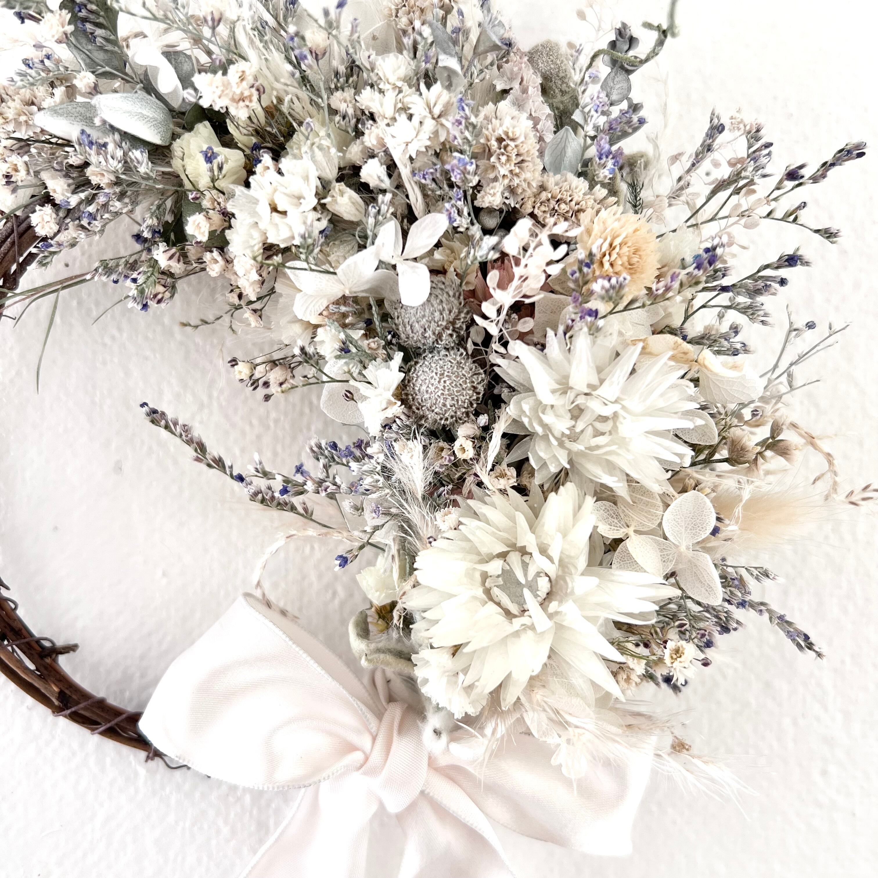 引っ越し祝い バレンタイン ホワイトデー クリスマスプレゼント 新築祝い ひな祭り 母の日 ホワイト 紫陽花 リース インテリアフラワー バースデー マタニティフォト バースデーフォト ブーケ