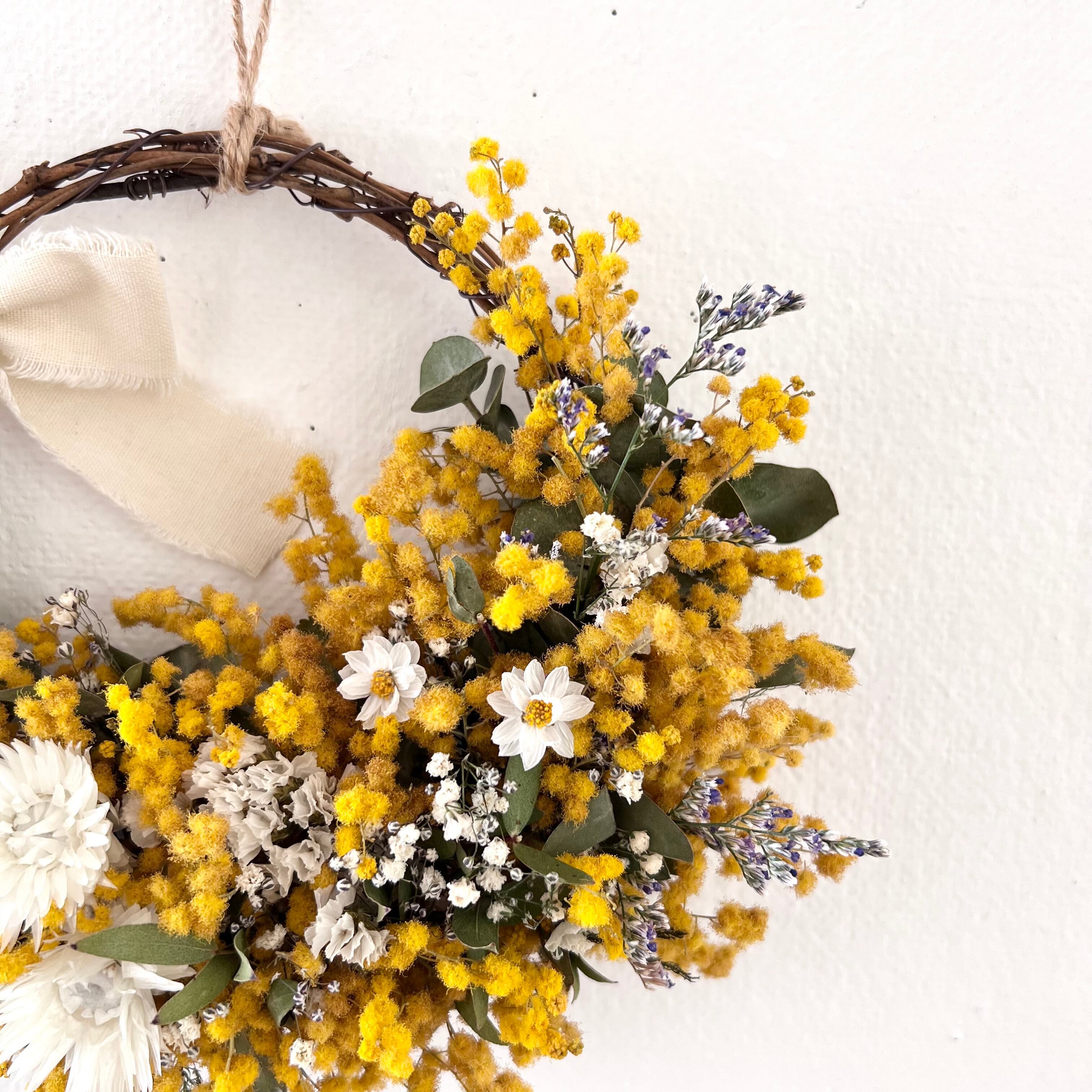 ミモザのリース ドライフラワー 誕生日プレゼント 引っ越し祝い 記念日. 母の日ギフト