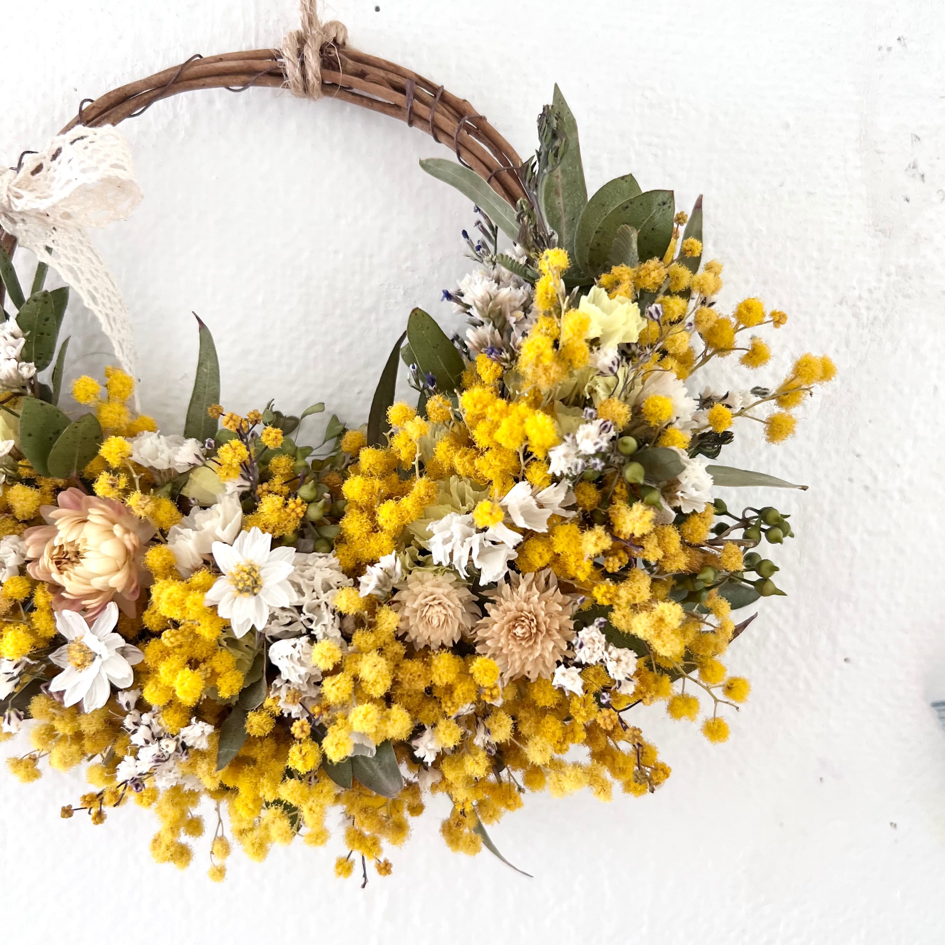 ミモザのリース ドライフラワー 誕生日プレゼント 引っ越し祝い 記念日. 母の日ギフト