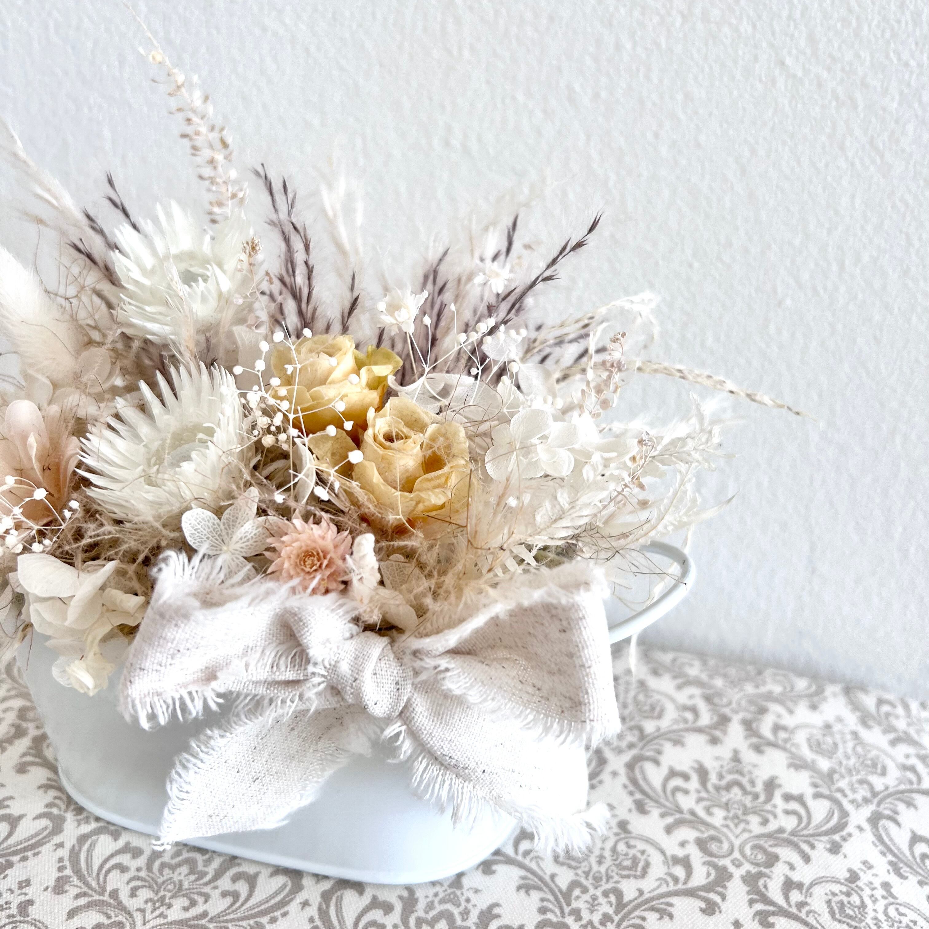 ナチュラルカラー ローズとシルバーデージーのアレンジメント プリザーブドフラワー 誕生日プレゼント 引っ越し祝い 母の日ギフト