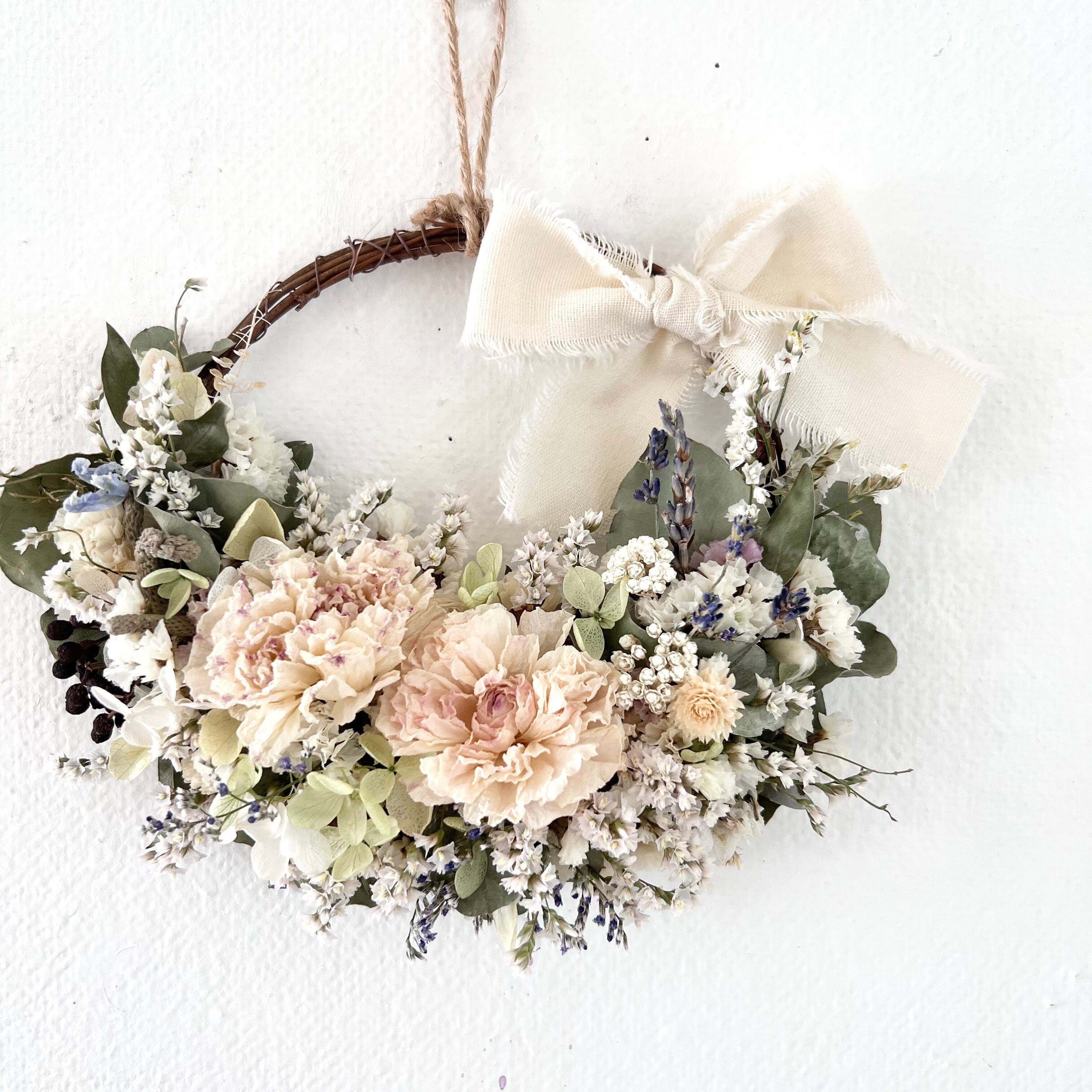 ラナンキュラスと小花のリース ドライフラワー 誕生日プレゼント 引っ越し祝い 記念日. ギフト