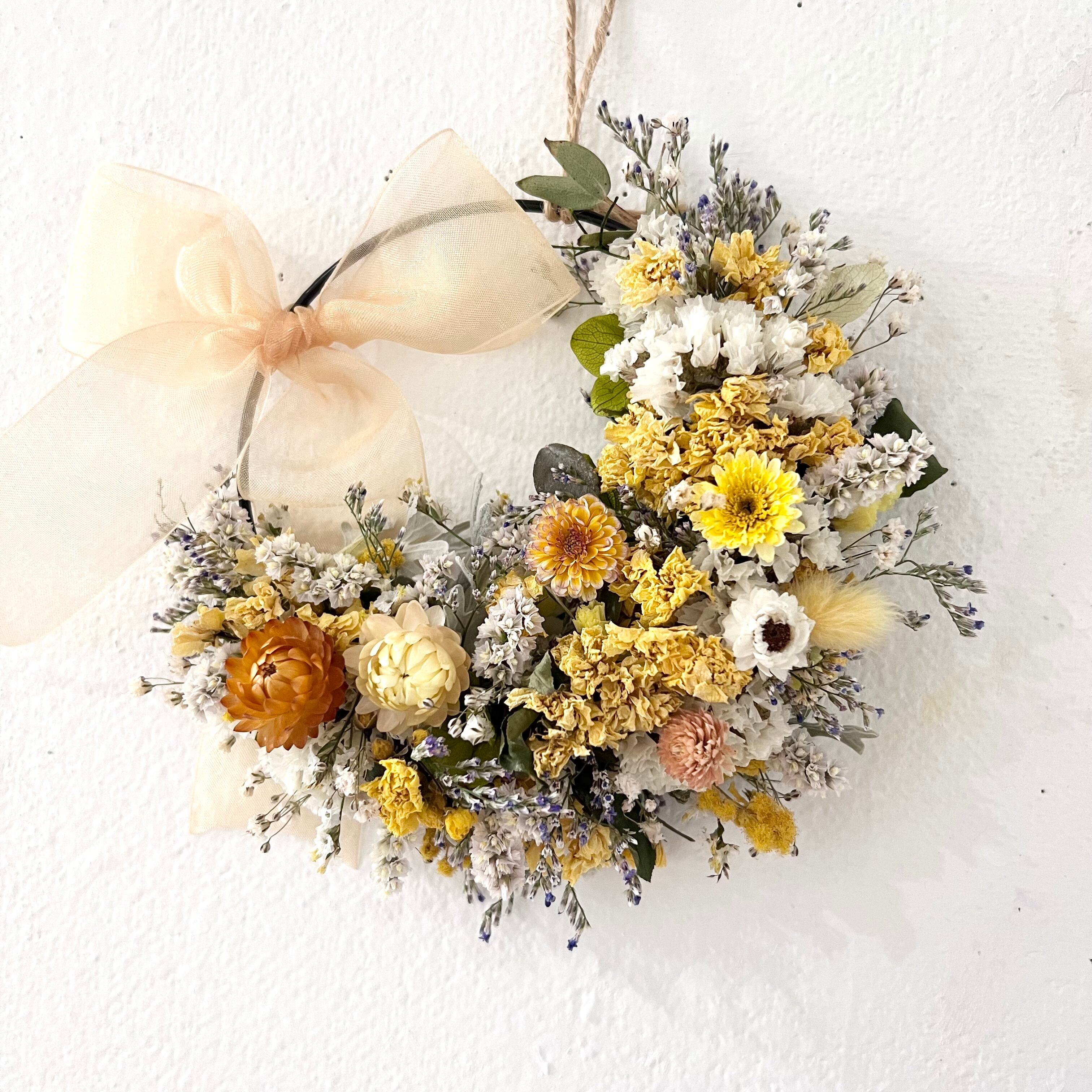 ヘリクリサムと小花のリース ドライフラワー 誕生日プレゼント 引っ越し祝い 記念日. ギフト