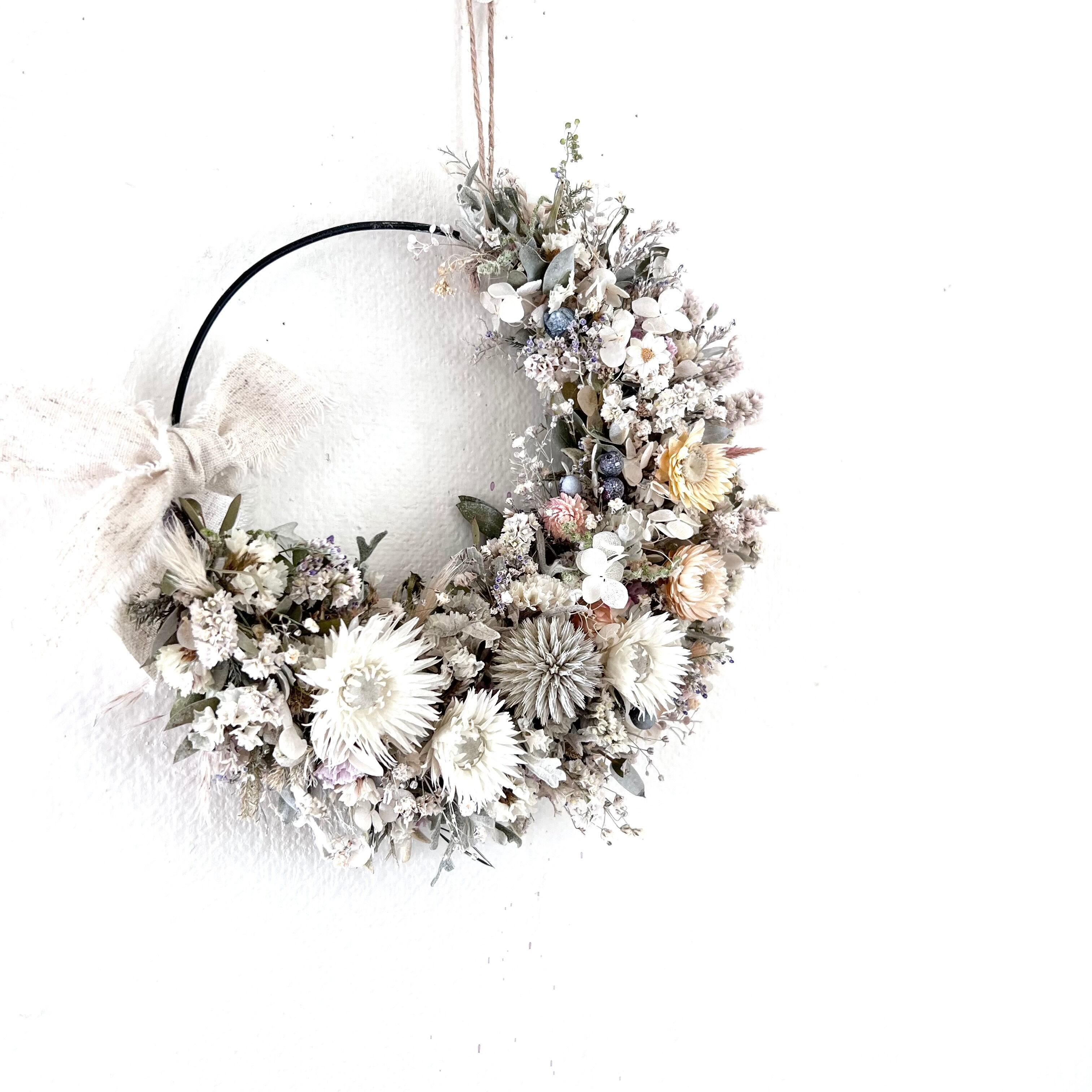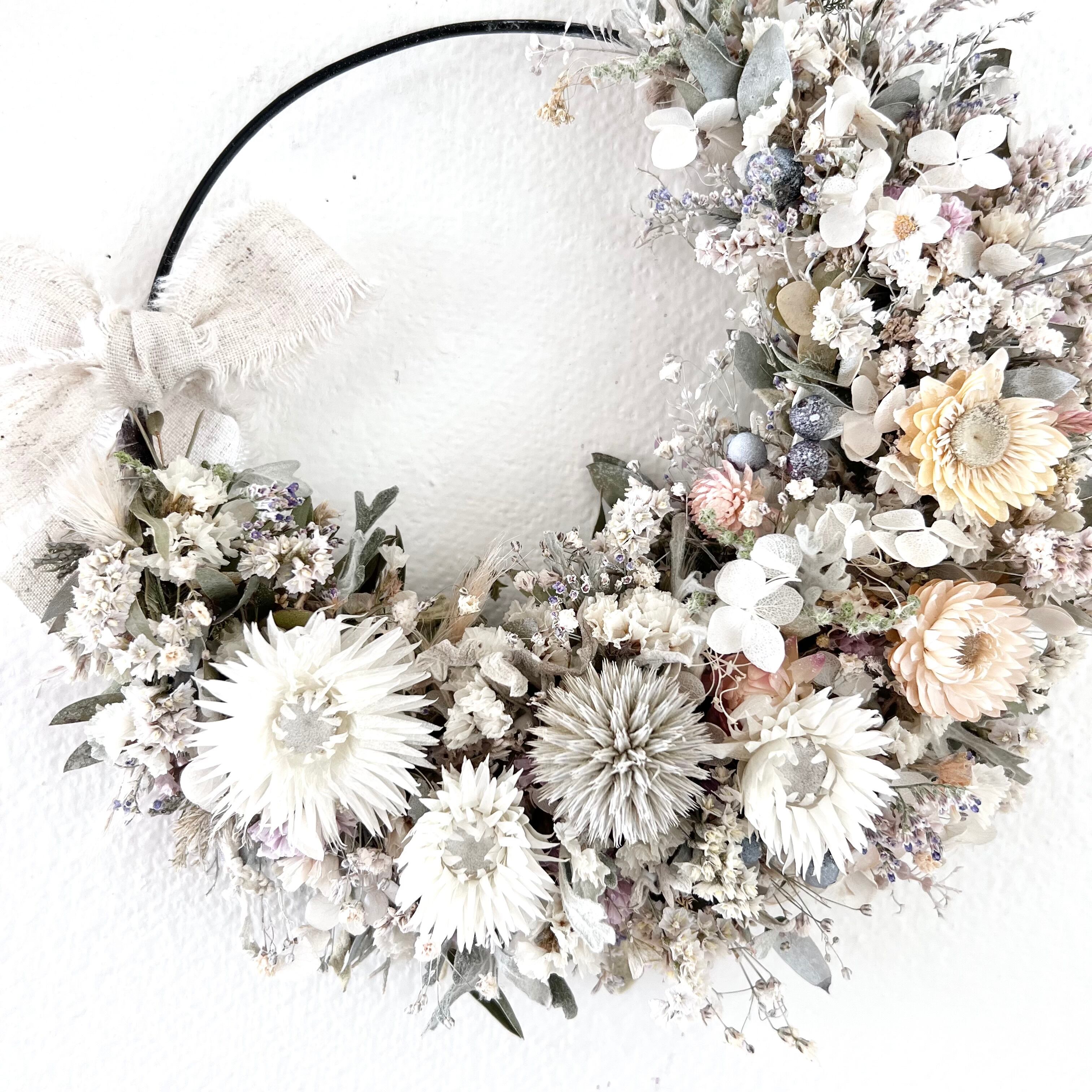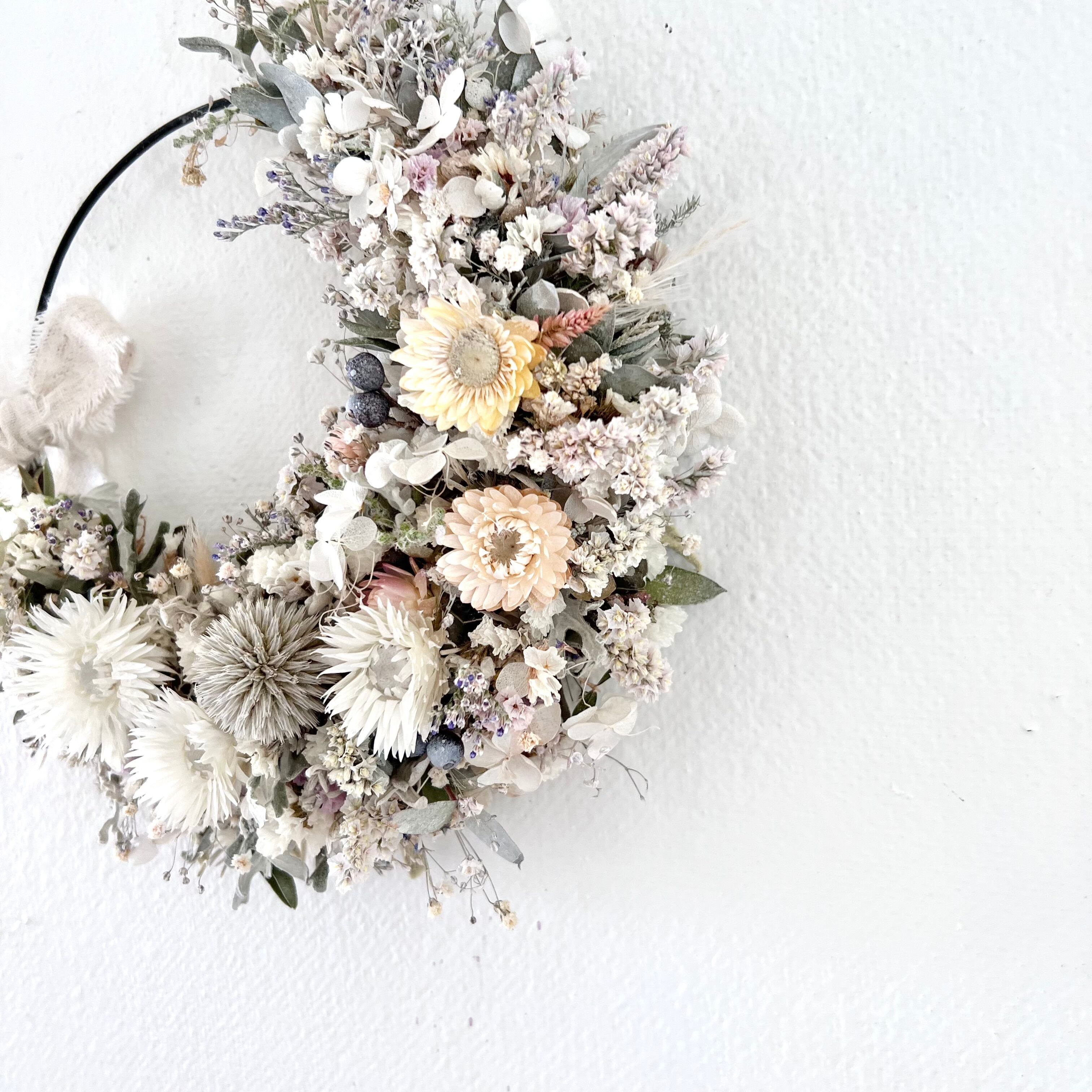 シルバーデージーと小花の三日月リース ドライフラワー 誕生日プレゼント 引っ越し祝い 記念日. ギフト 399