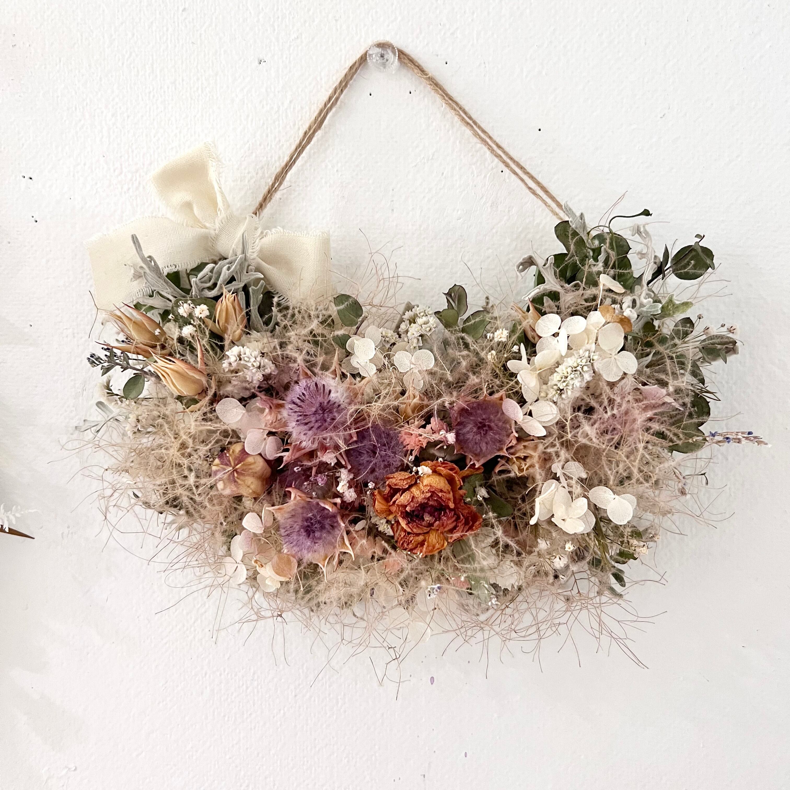 ラナンキュラス スモークツリーのシャビーリース ドライフラワー 誕生日プレゼント 引っ越し祝い 記念日. ギフト 401