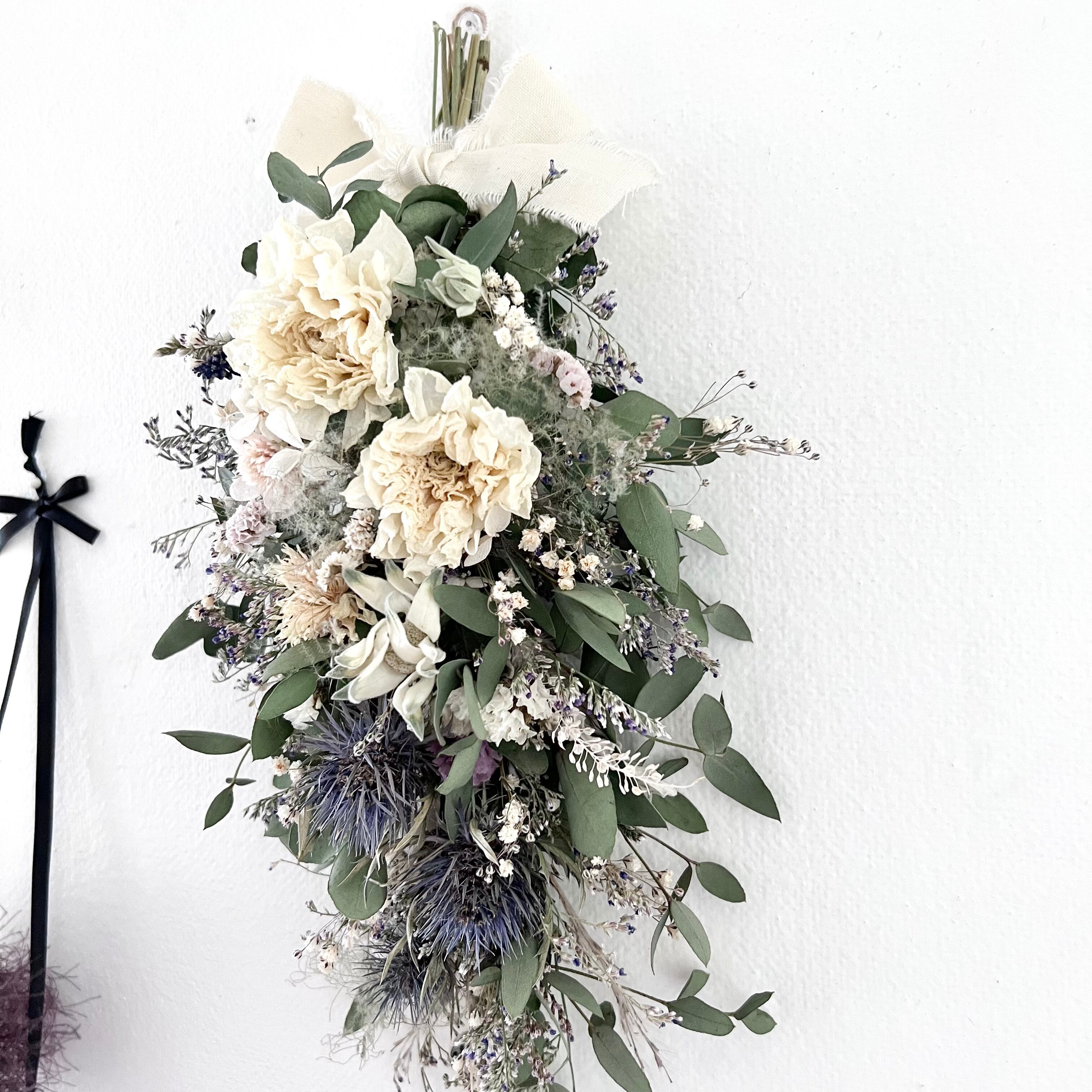 ユーカリ ラナンキュラスの縦型スワッグ ドライフラワー 誕生日プレゼント 引っ越し祝い 記念日. ギフト 431