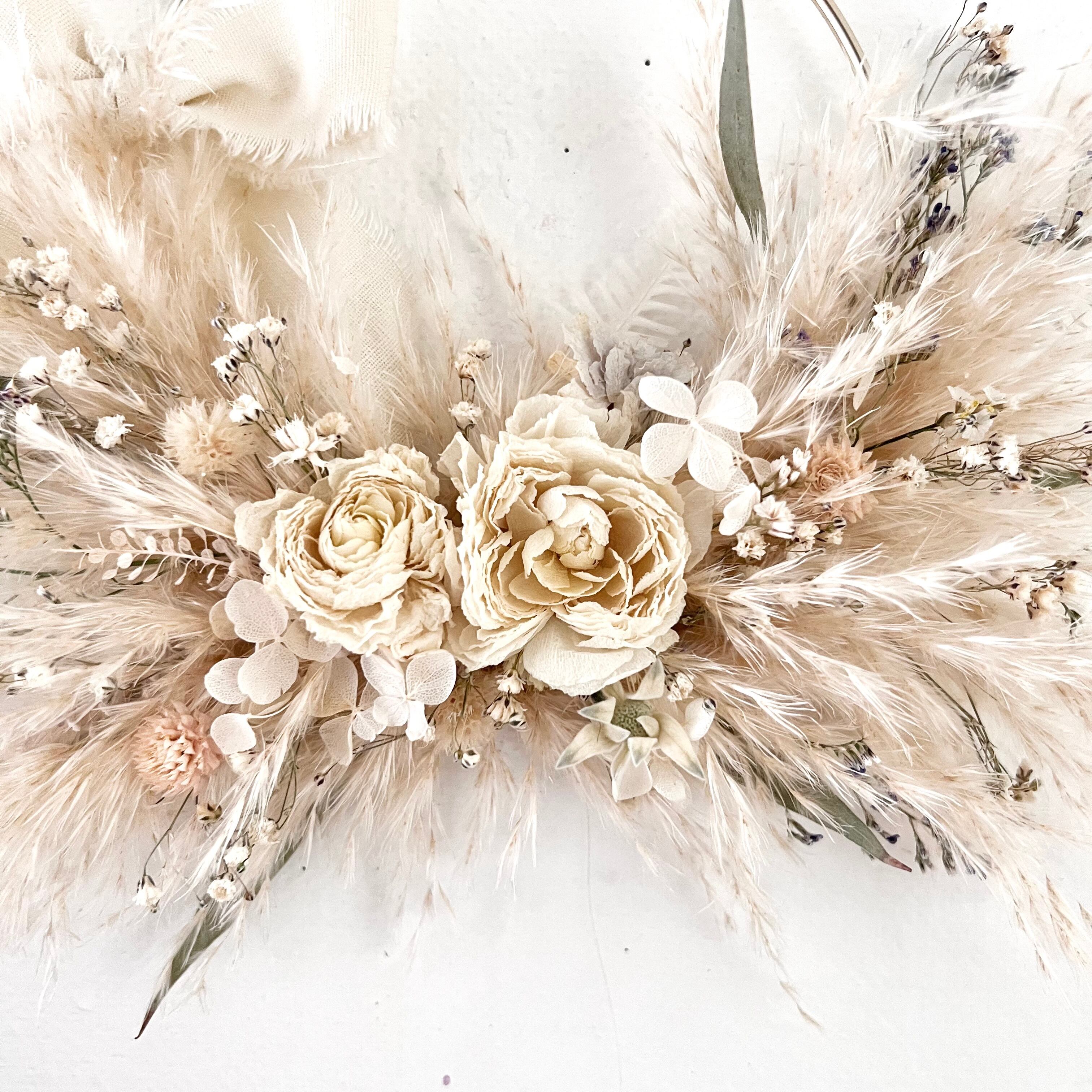 パンパスグラスとラナンキュラスのリース ドライフラワー 誕生日プレゼント 引っ越し祝い 記念日. ギフト 432