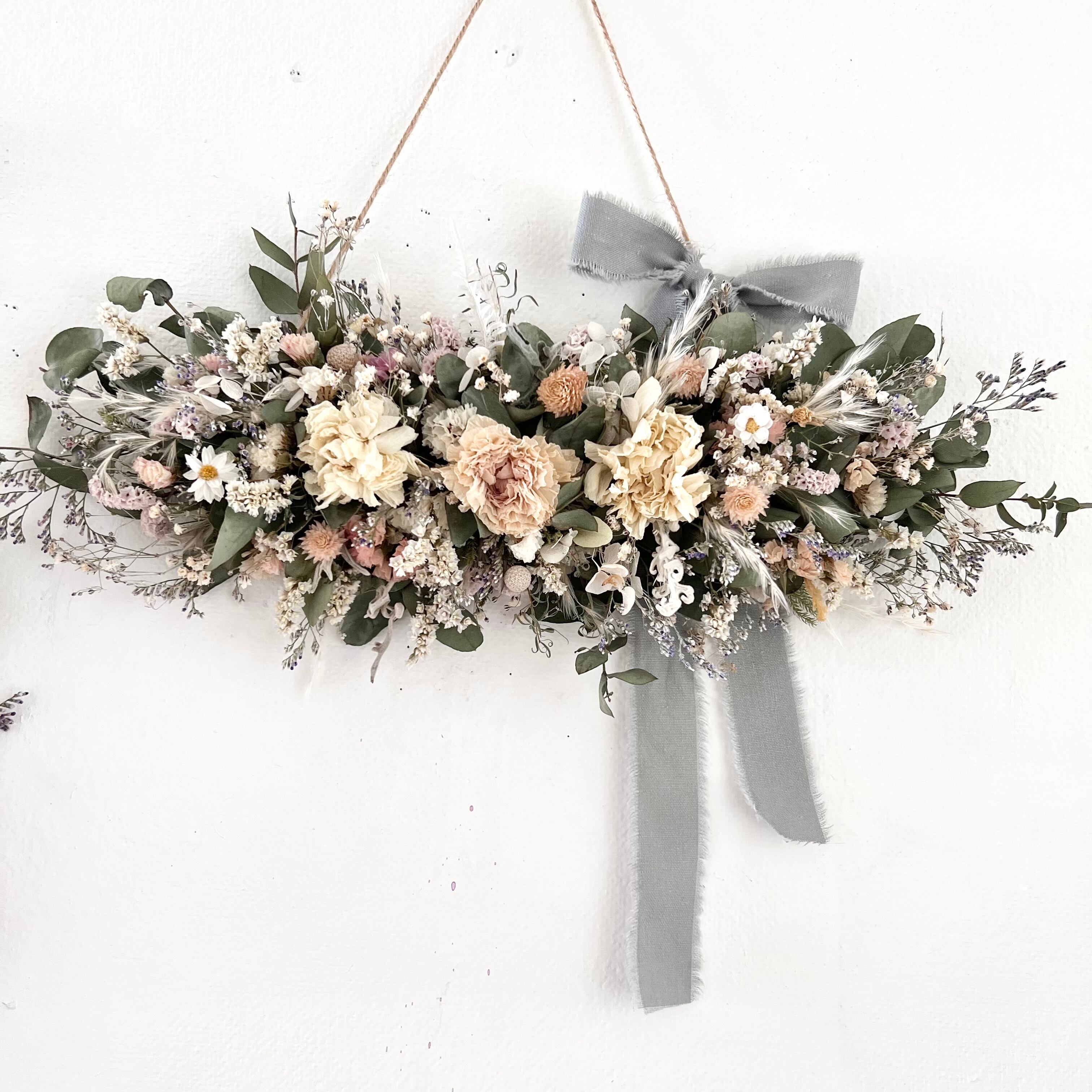 ユーカリ ラナンキュラスの横幅のスワッグ ドライフラワー 誕生日プレゼント 引っ越し祝い 記念日. ギフト 450