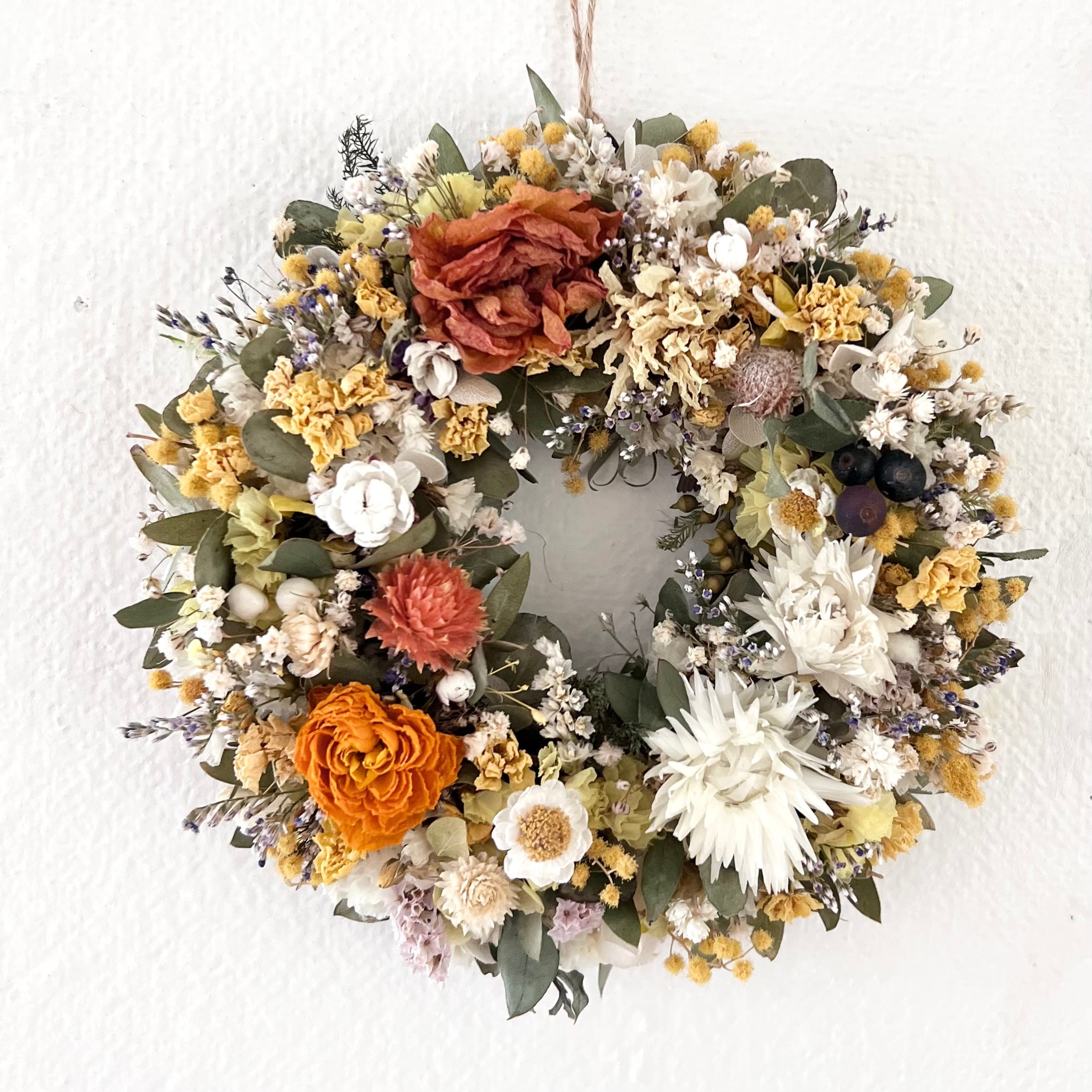 ラナンキュラスとシルバーデージーのリース ドライフラワー 誕生日プレゼント 引っ越し祝い 記念日. ギフト 457