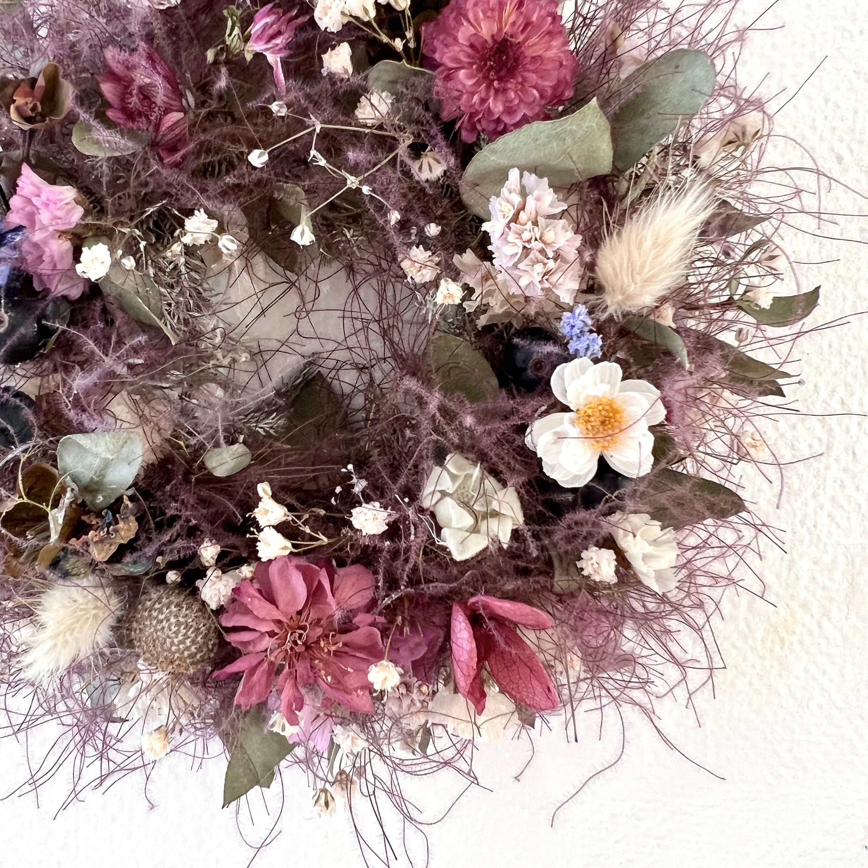 sale スモークツリーと小花のリース ドライフラワー 誕生日プレゼント 引っ越し祝い 記念日. ギフト