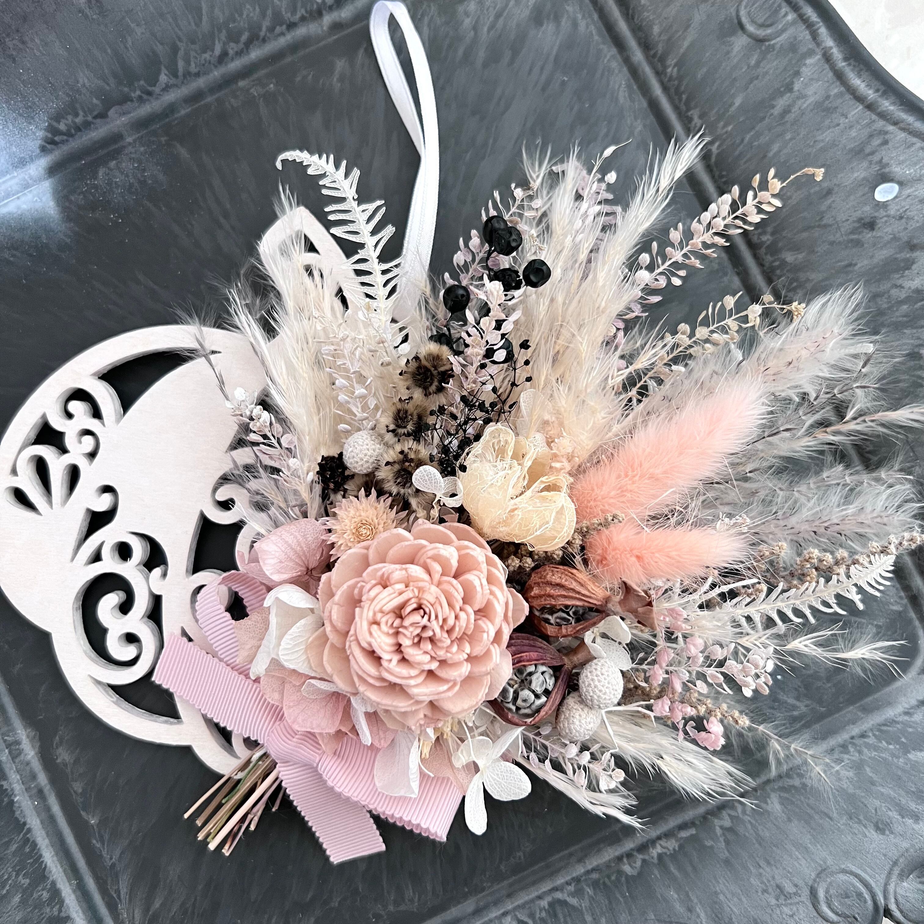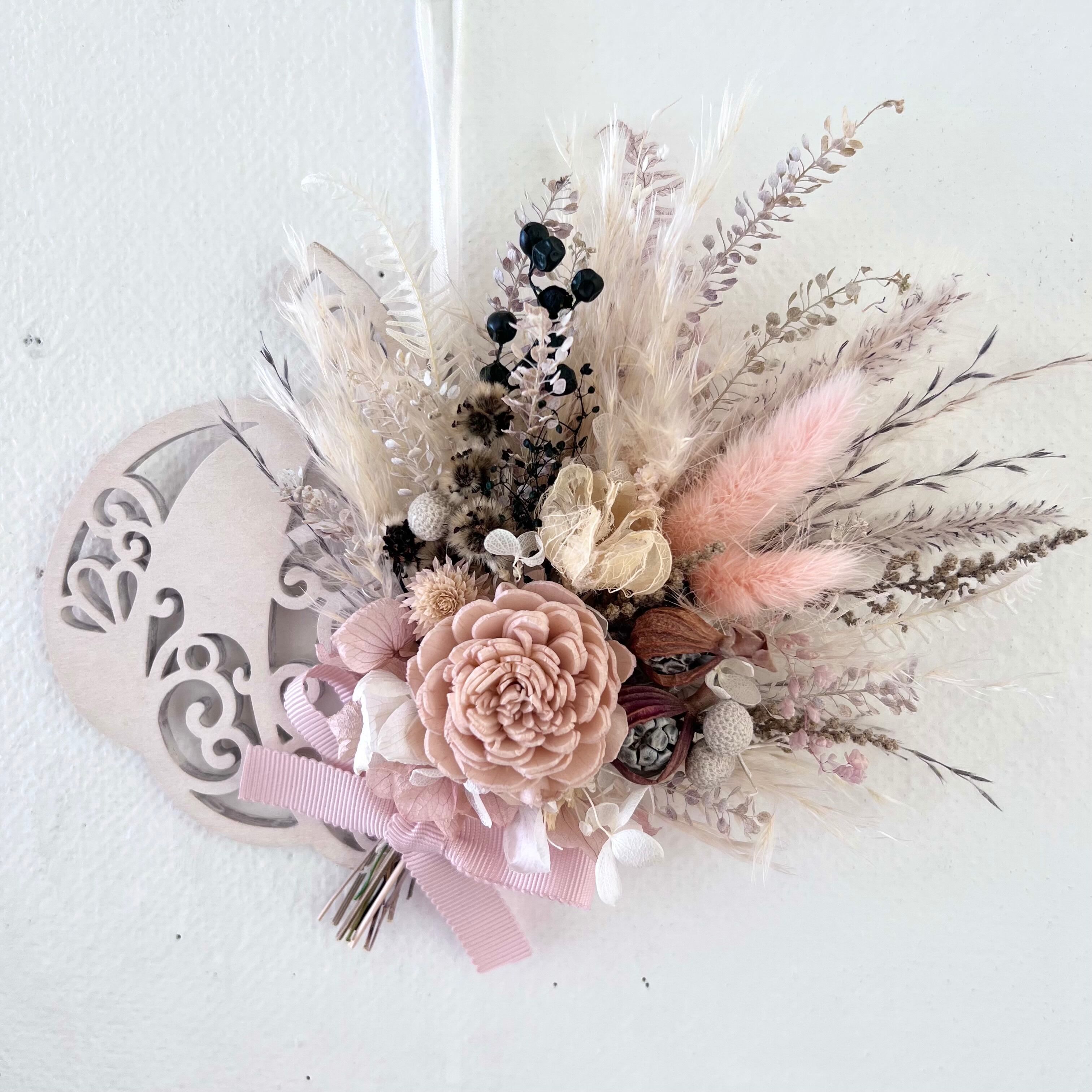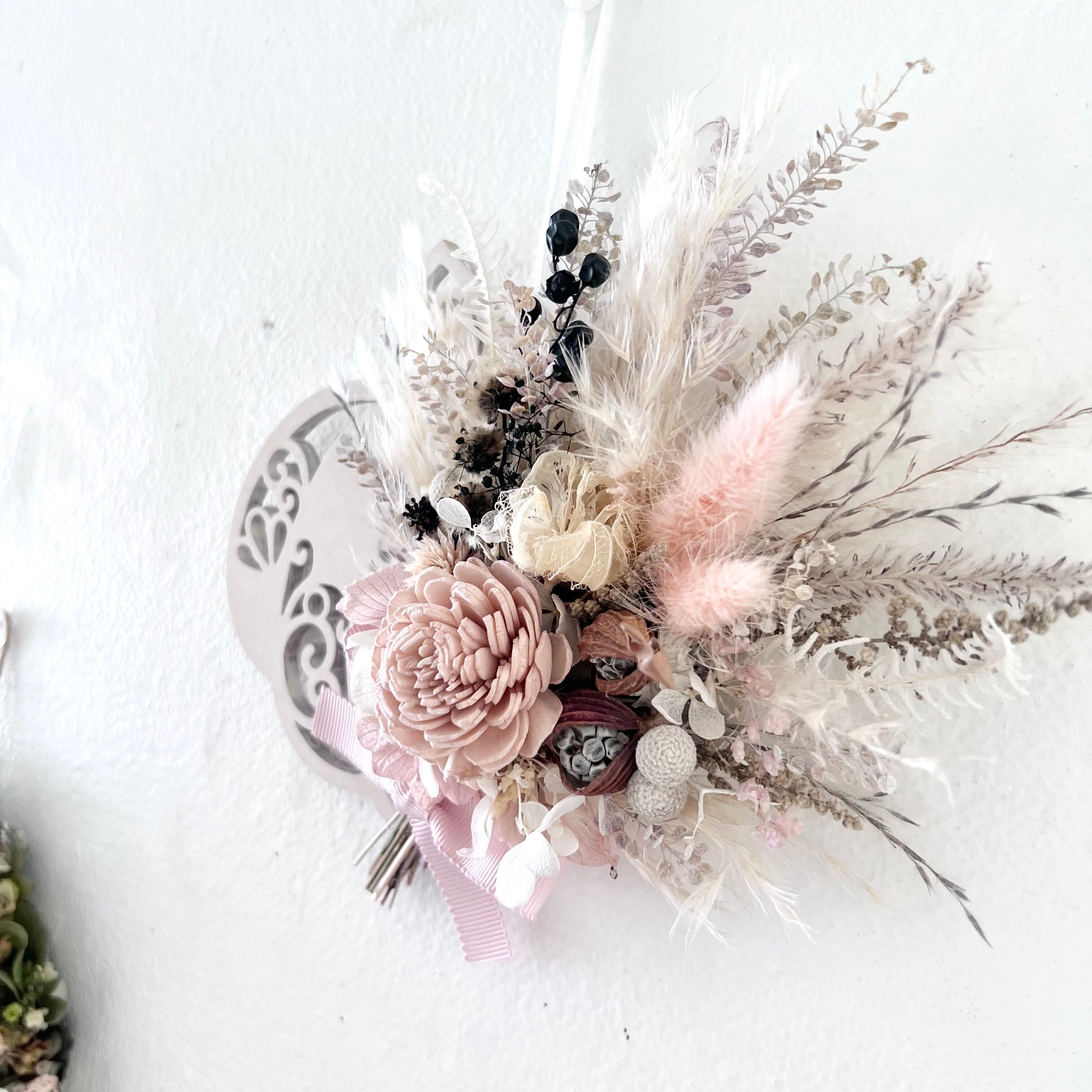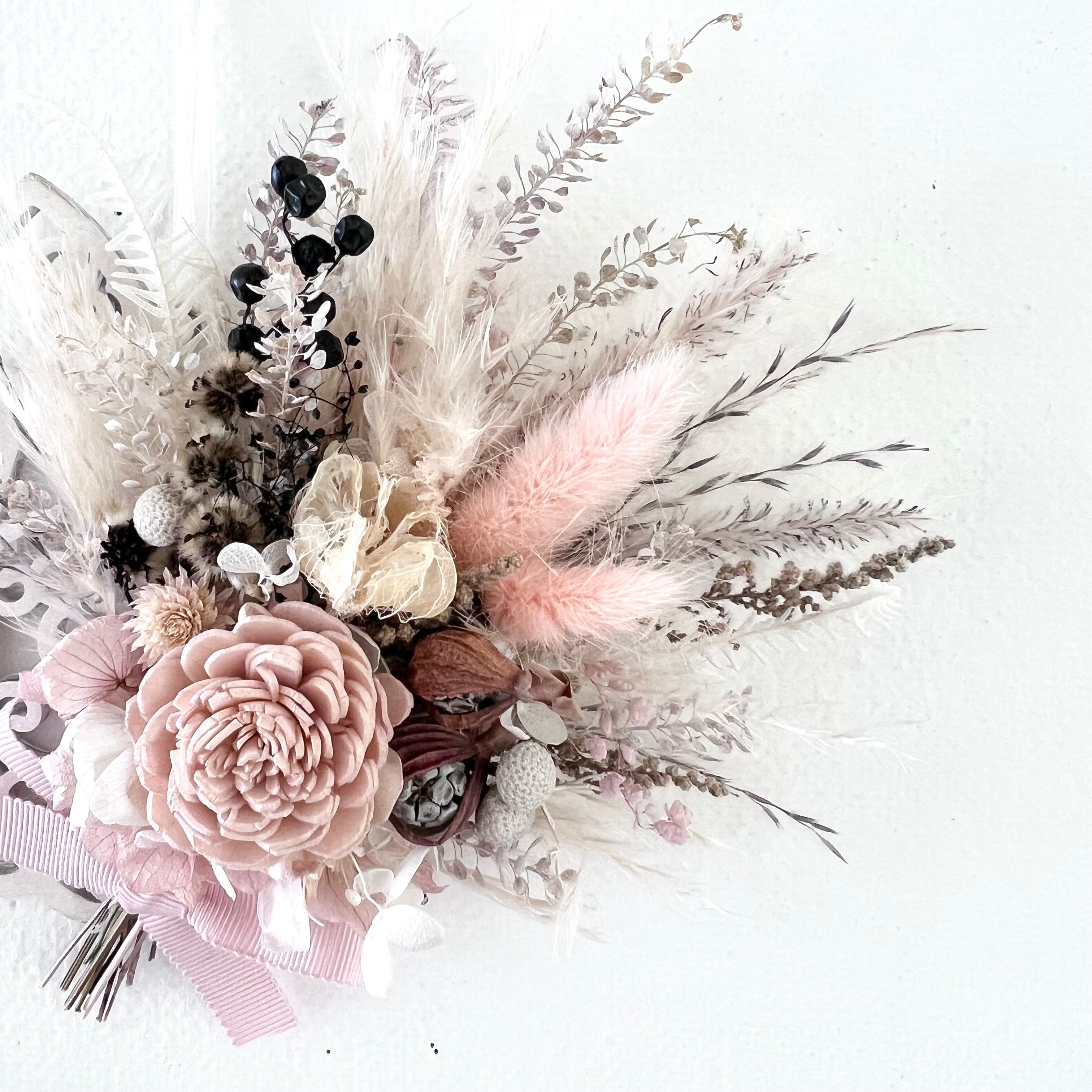 ナチュラルピンクのソラローズとふわふわパンパスラグラス 木の実 ペッパーベリーなどを合わせた