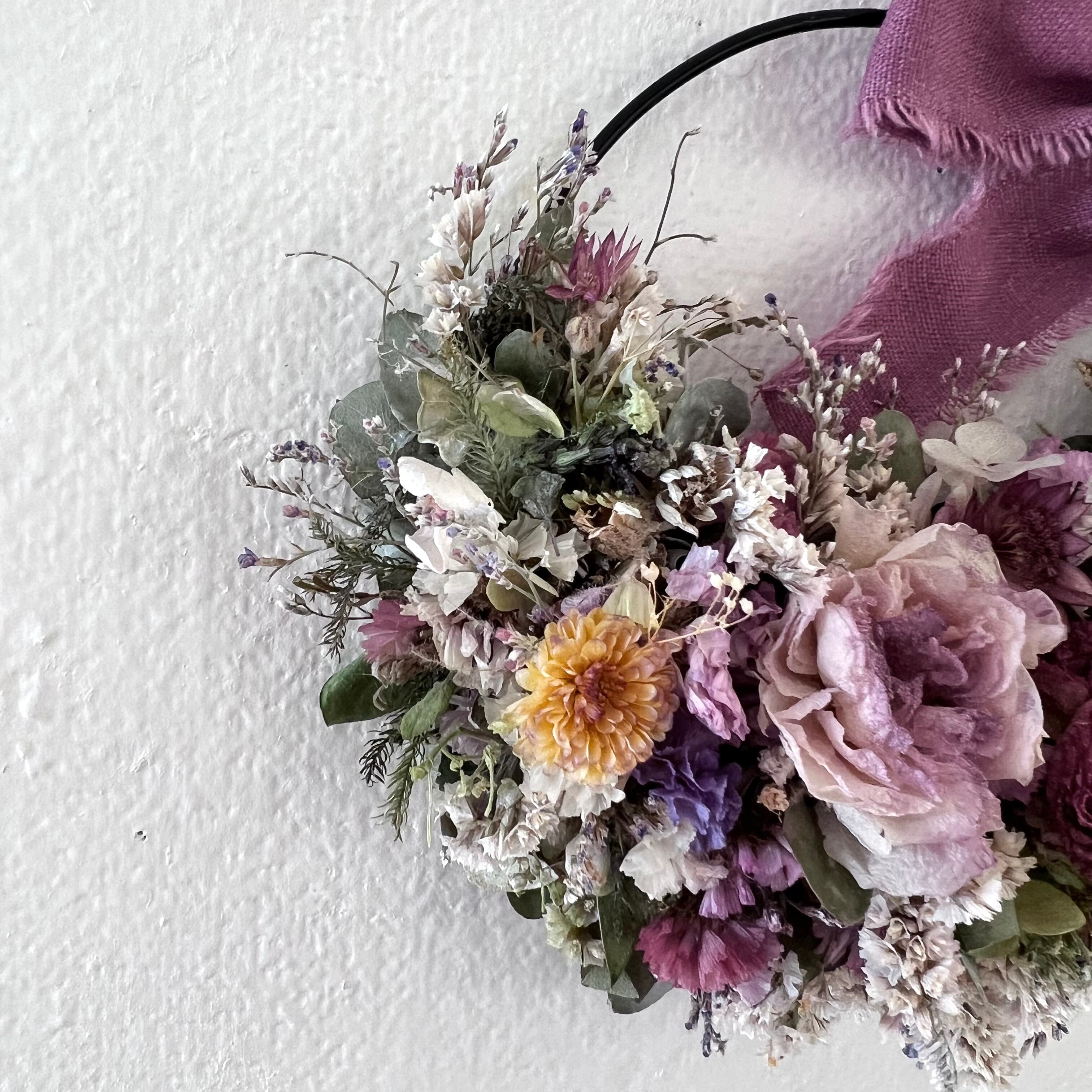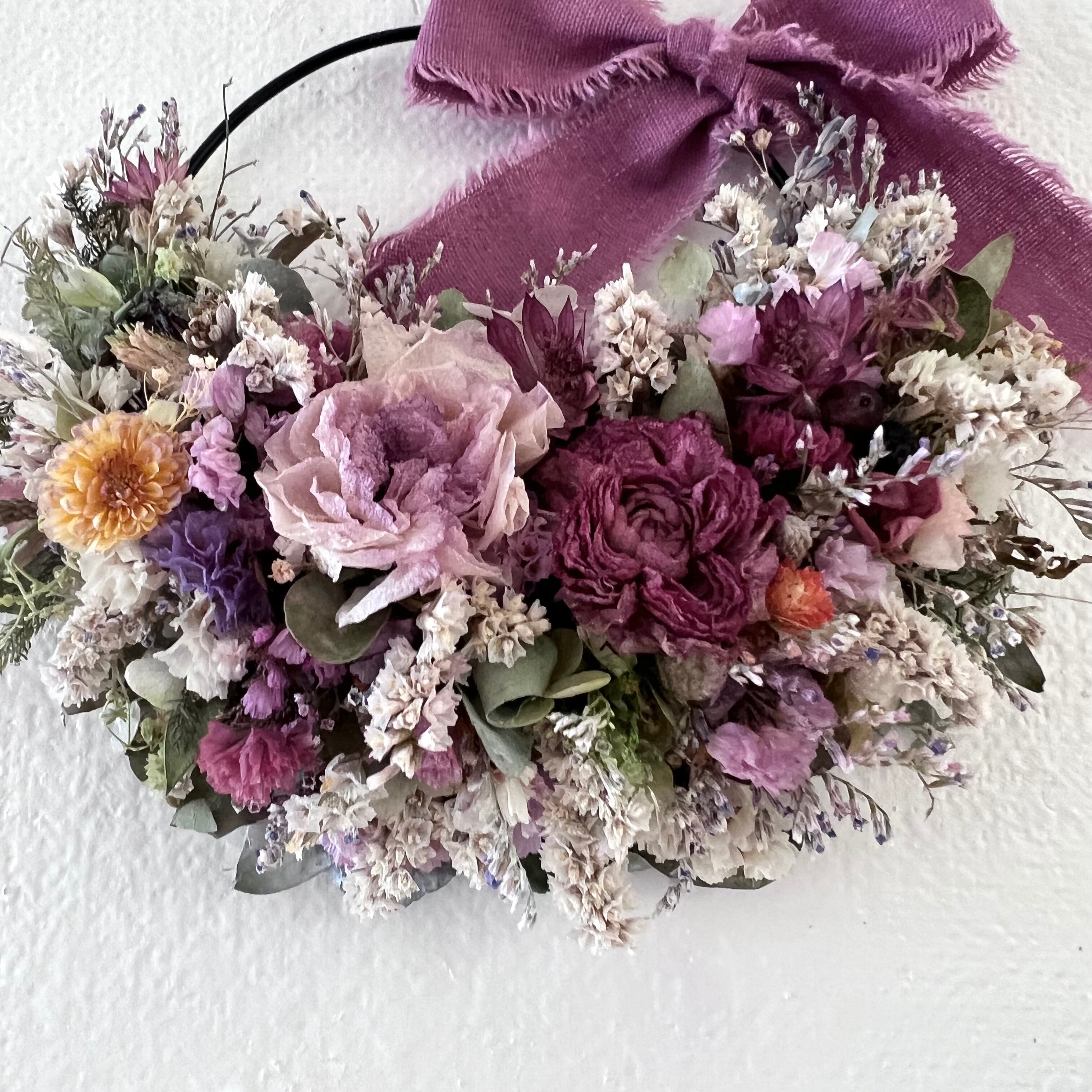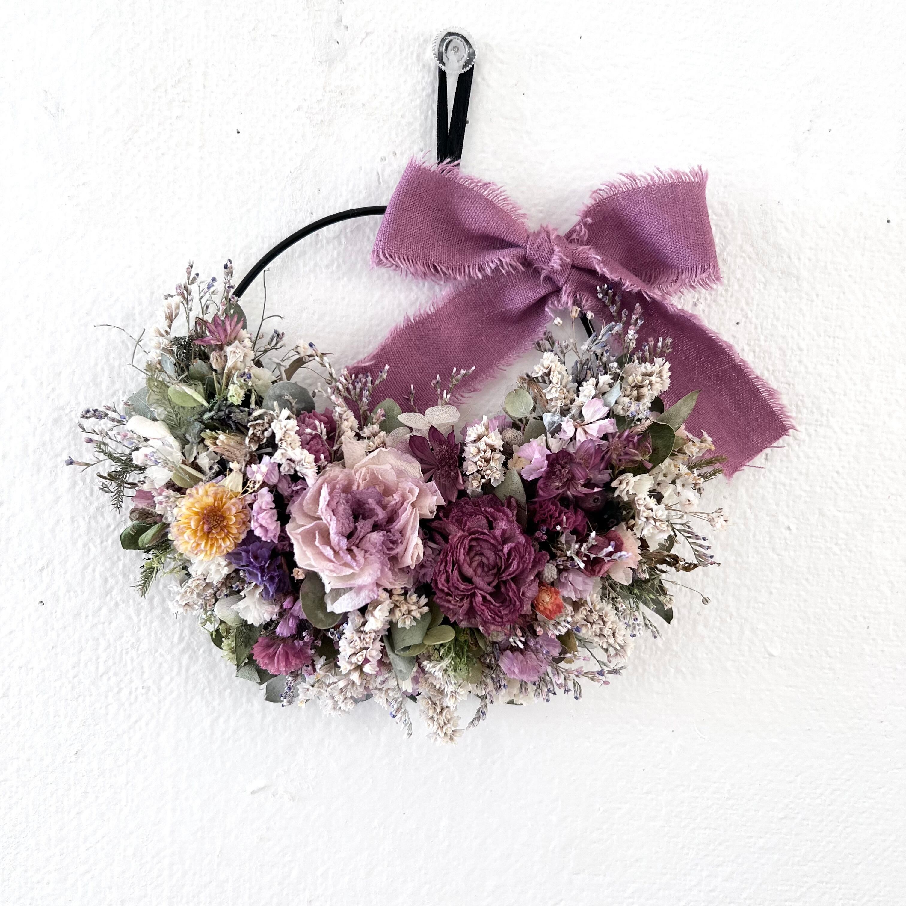 ラナンキュラスと小花のリース ドライフラワー 誕生日プレゼント 引っ越し祝い 記念日. ギフト
