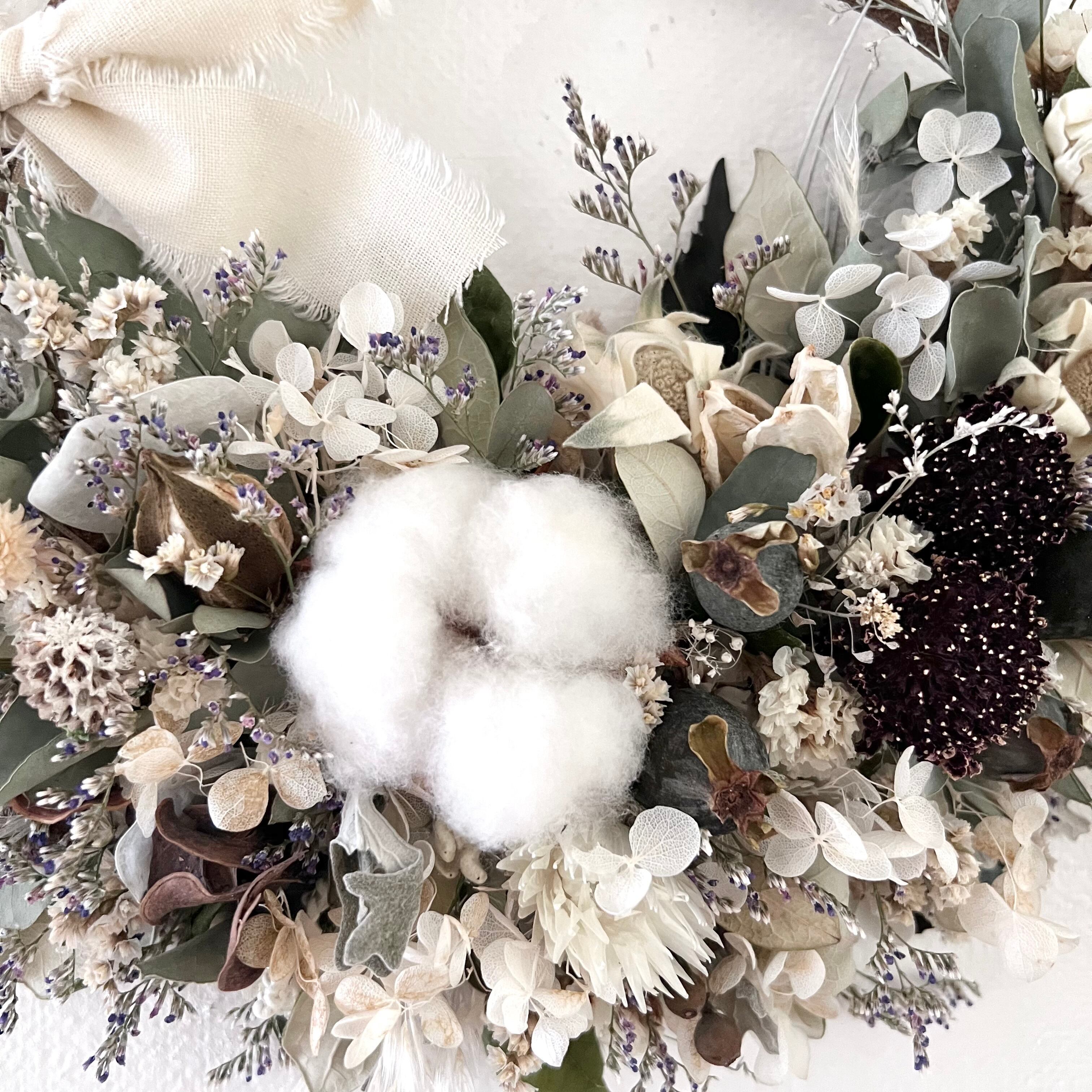 ユーカリ コットンのシャビーリース ドライフラワー 誕生日プレゼント 引っ越し祝い 記念日 ギフト